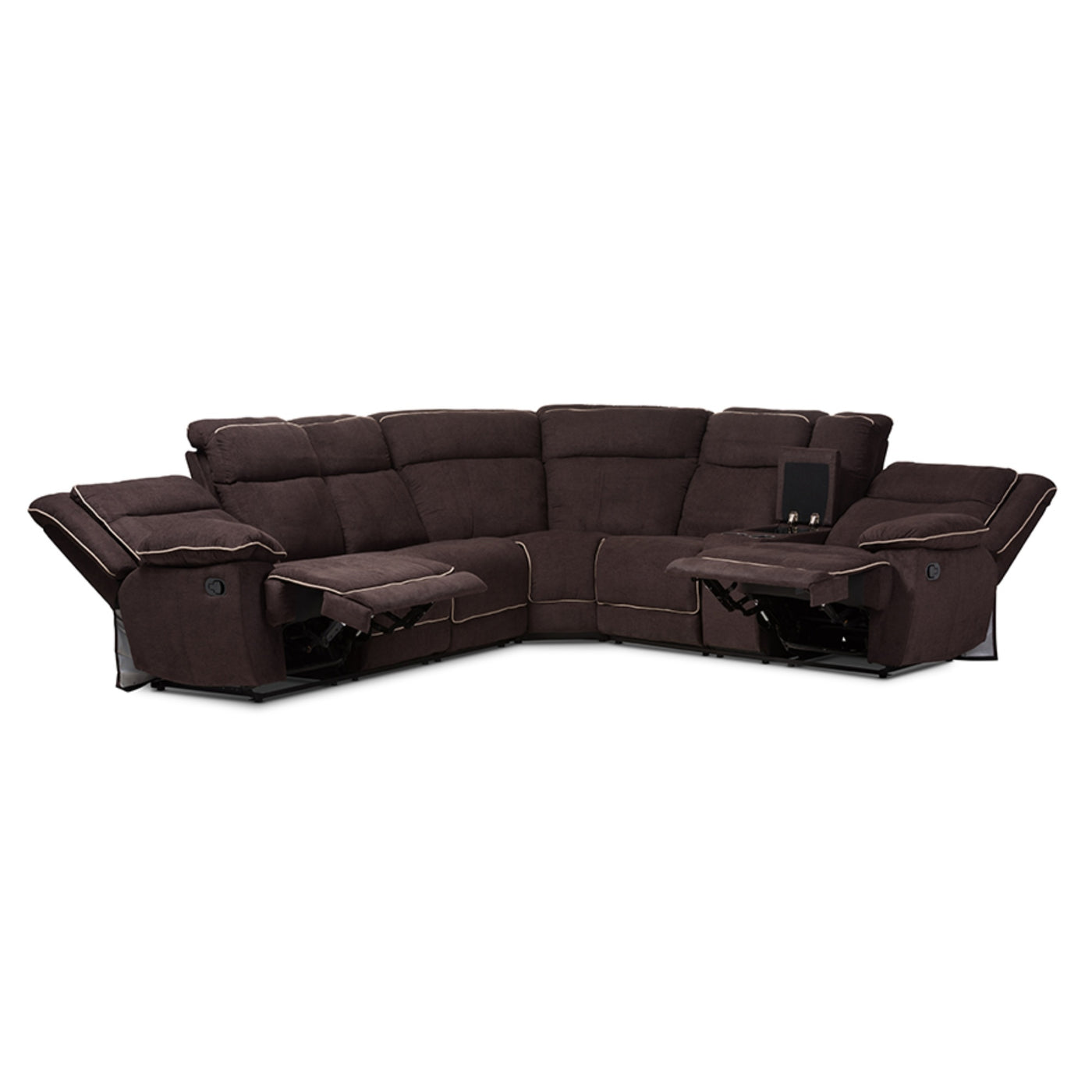 Baxton Studio Sabella Modern and Contemporary Chocolate Brown Fabric Upholstered 7-Piece Reclining Sectional Sofa