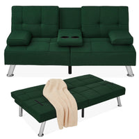 Best Choice Products Linen Modern Folding Futon, Reclining Sofa Bed For Apartment, Dorm W/Removable Armrests, 2 Cupholders - Dark Green