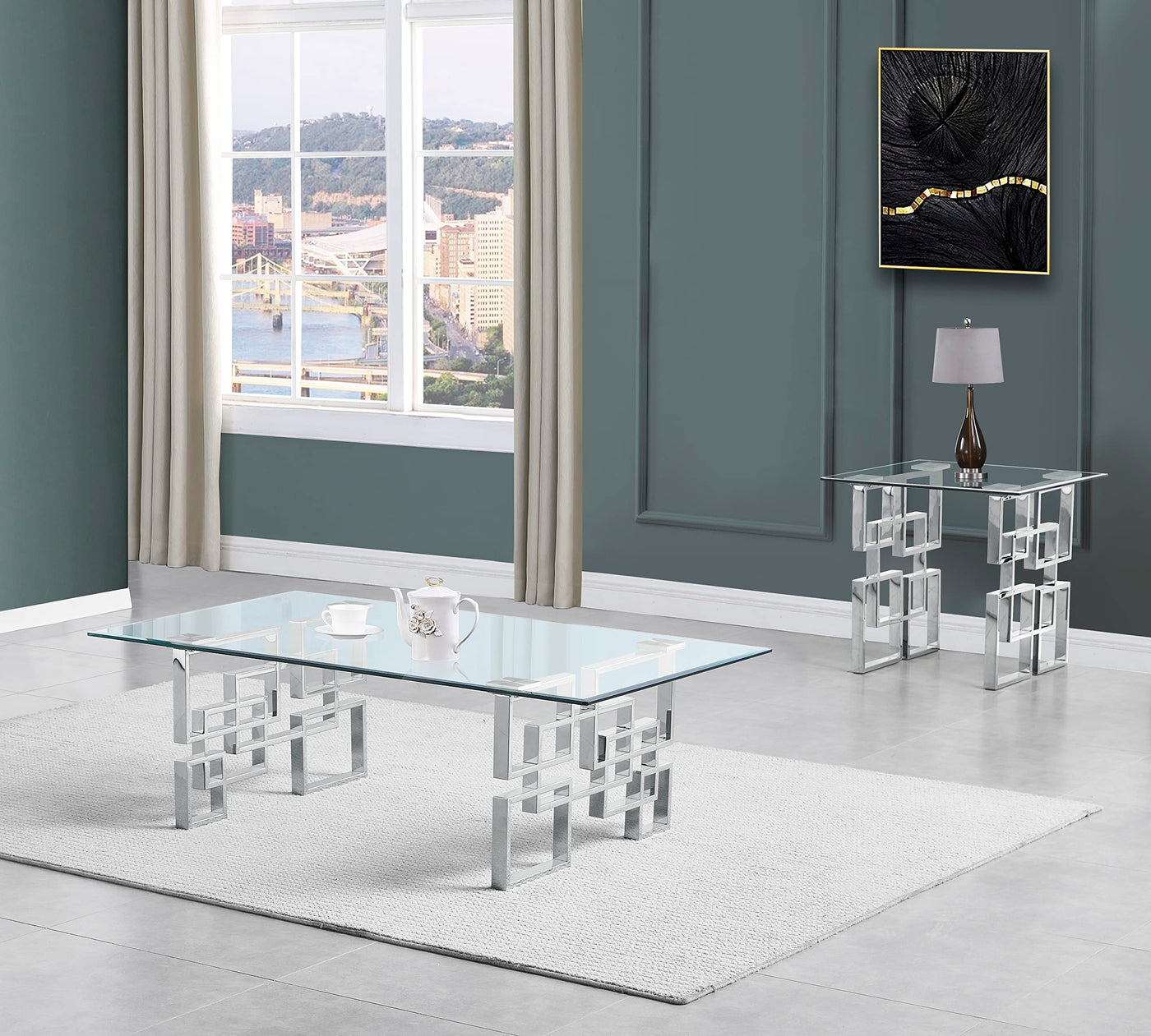 Tempered Glass Table Top | Unique Silver Stainless Steel Base | Set includes (1) Coffee Table and (1) End Tables