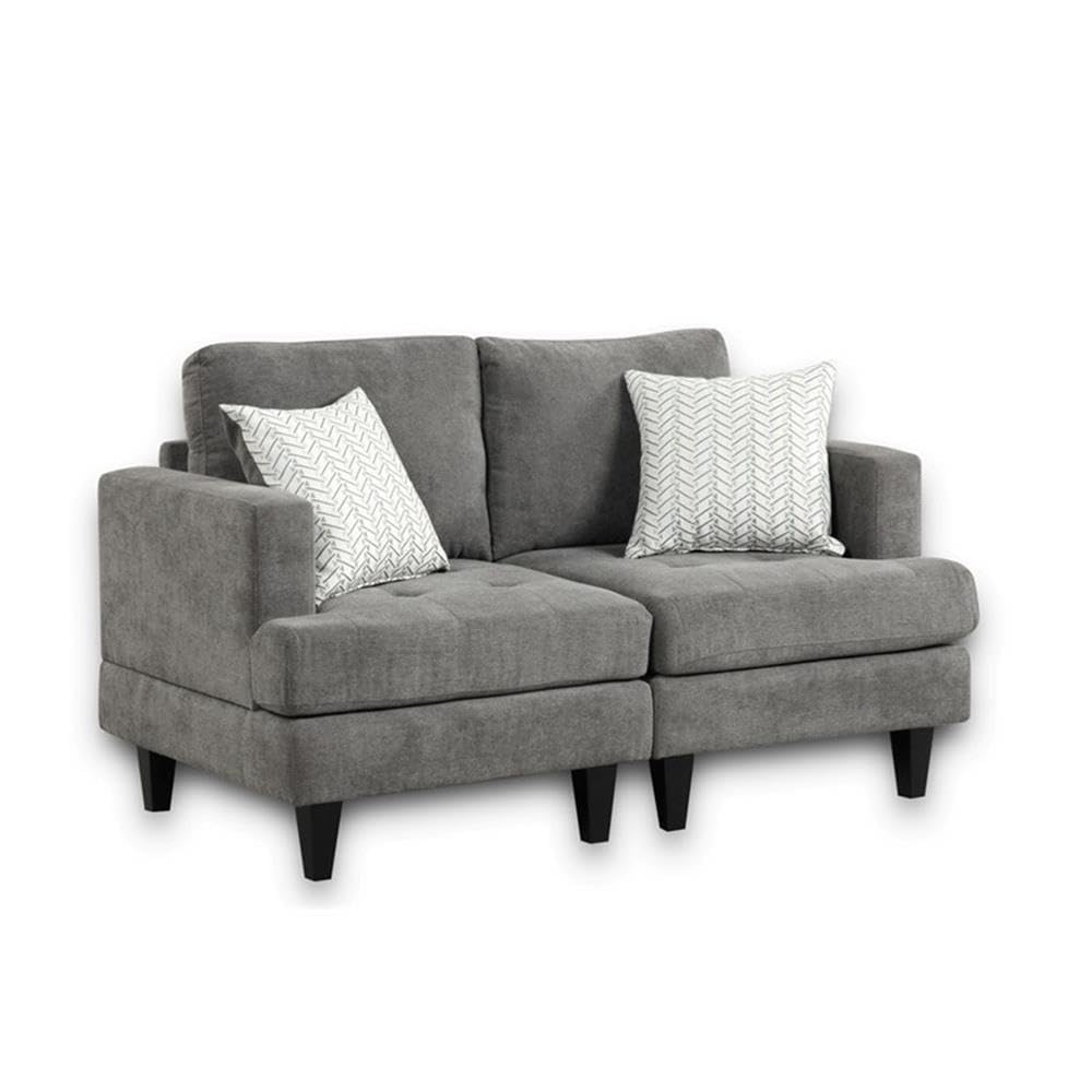Callaway Gray Chenille Sofa Loveseat Living Room Set with Throw Pillows