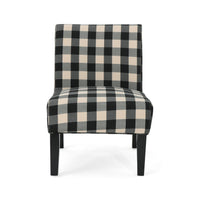 Whether you are looking for a cozy corner to kick back and relax or if you are just looking to upgrade your interior aesthetics, our accent chair is the perfect addition to any home. Featuring a minimalistic yet sophisticated design, this chair is sure to delight in both style and comfort. The beautifully tapered legs and sturdy build of the chair provide reliable stability while its plush upholstery offers outstanding comfort. With a streamlined structure, our chair will blend seamlessly into any existing decor.Includes: One (1) Accent ChairMaterial: FabricFabric Composition: 100% PolyesterLeg Material: RubberwoodColor: Black CheckerboardLeg Finish: Matte BlackAssembly RequiredHand-Crafted DetailsDimensions: 29.50 inches deep x 22.50 inches wide x 32.00 inches highSeat Dimensions: 22.00 inches deep x 22.50 inches wide x 18.50 inches high