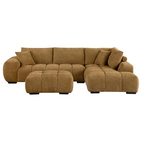 Coaster Home Furnishings Camacho Upholstered Sectional Sofa with Ottoman Set Amber