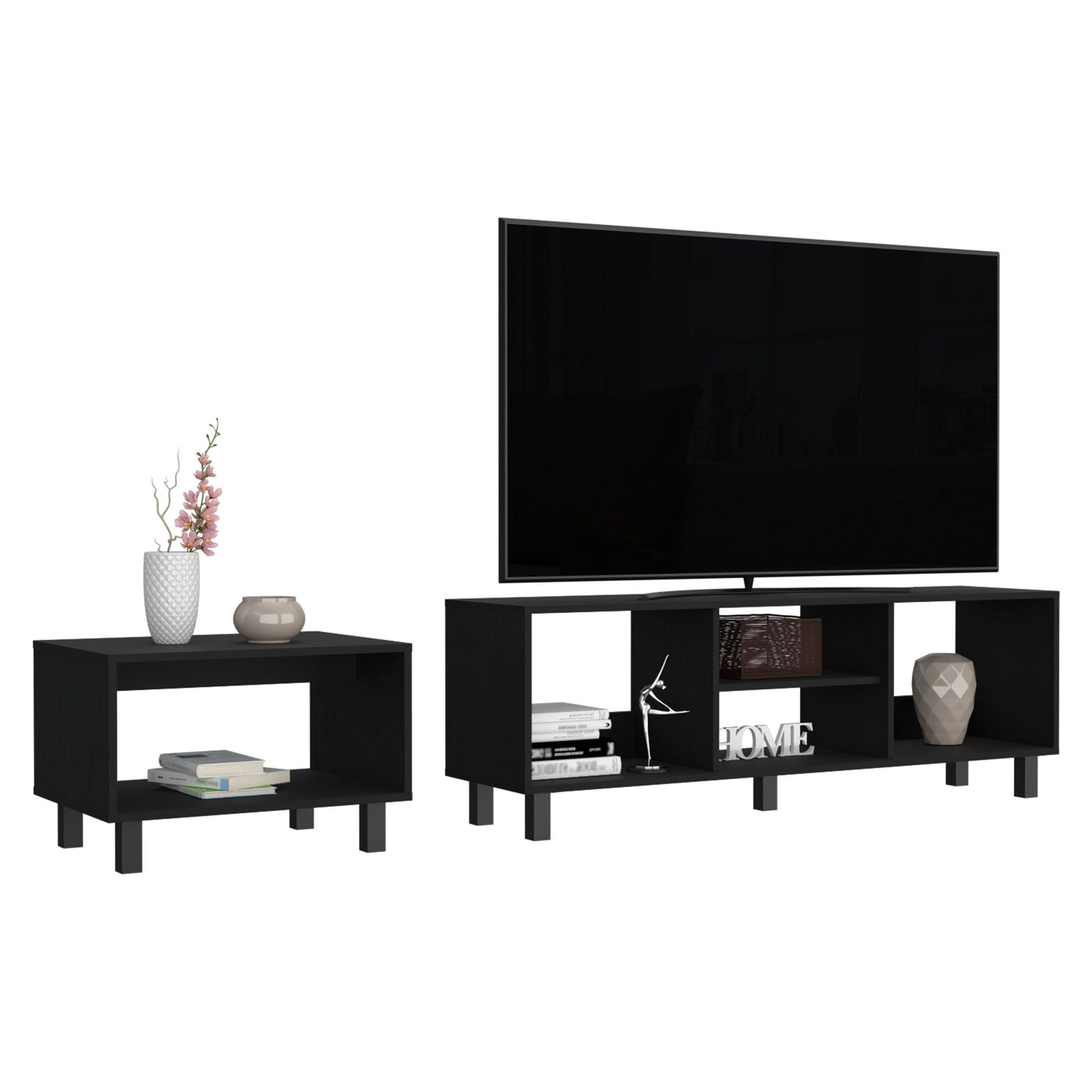 Depot E-Shop Carter 2 Piece Living Room Set, Streamlined With Tv Stand And Coffee Table, Black