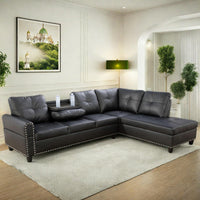 Fontoi Leather Sectional Couch Sofa, Modern Nail-Head Design L Shaped Sectional Sofa For Living Room, 4 Seat L Couch With Cup Ho