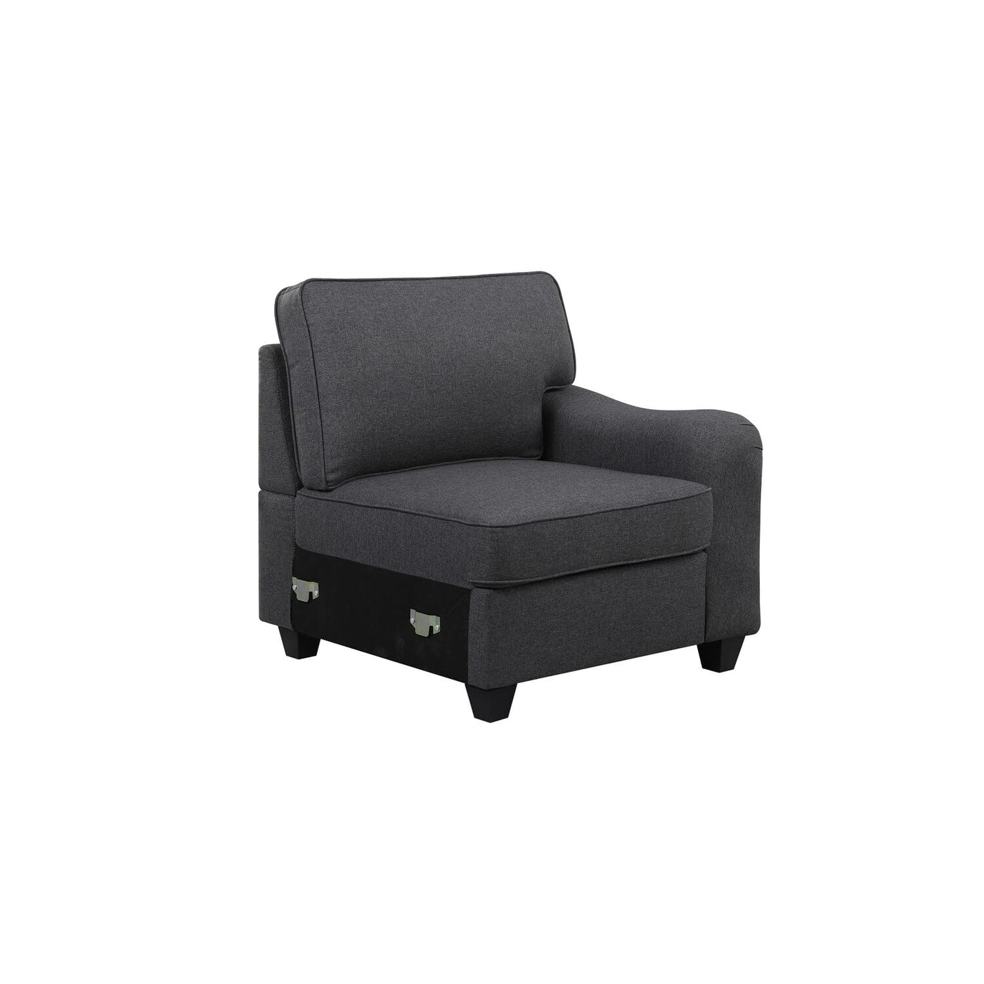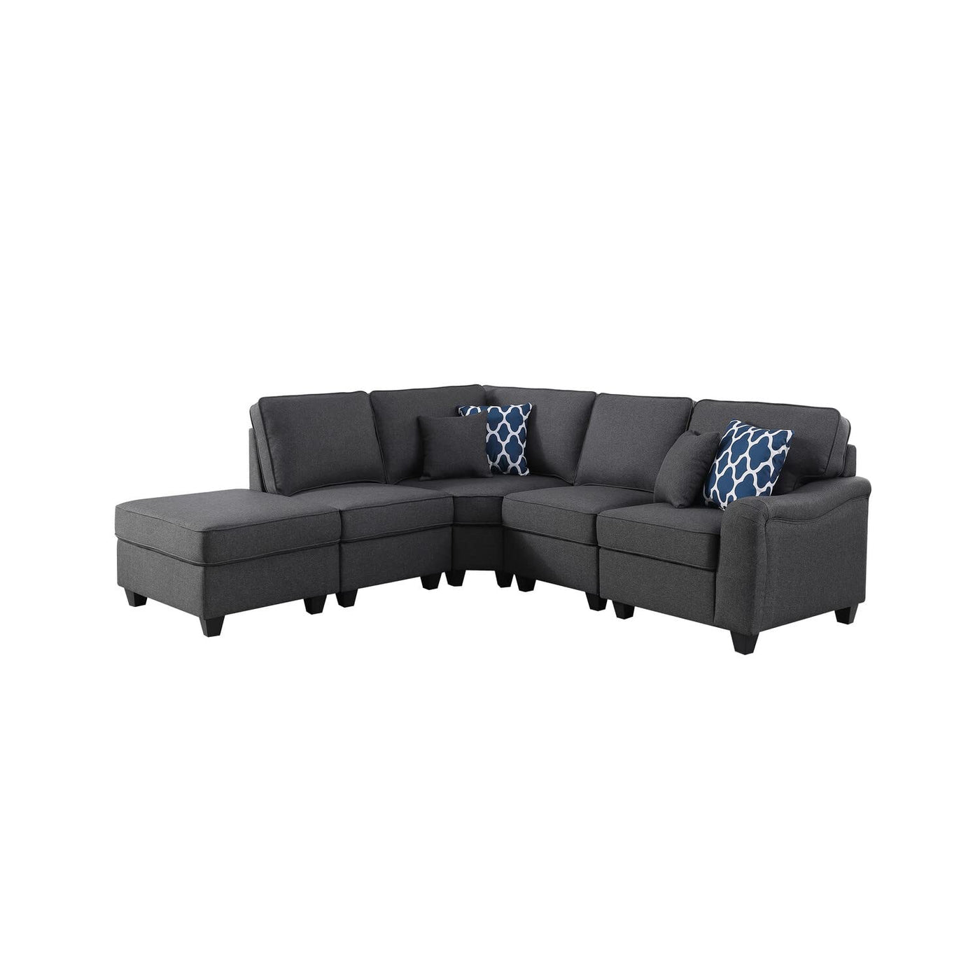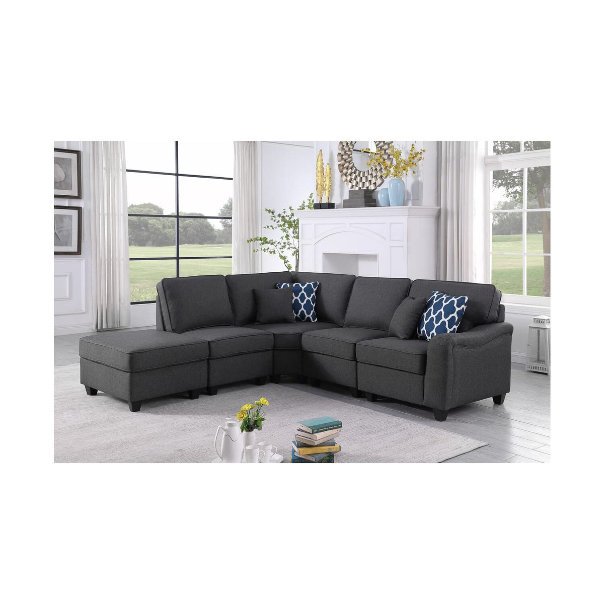 Lilola Home 5 Piece Linen Modular L-Shape Sectional Sofa with Ottoman, Dark Gray