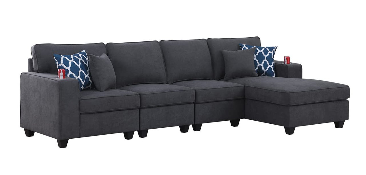 Lilola Home Cooper Stone Gray Woven Fabric 4Pc Sectional Sofa Chaise with Cupholder