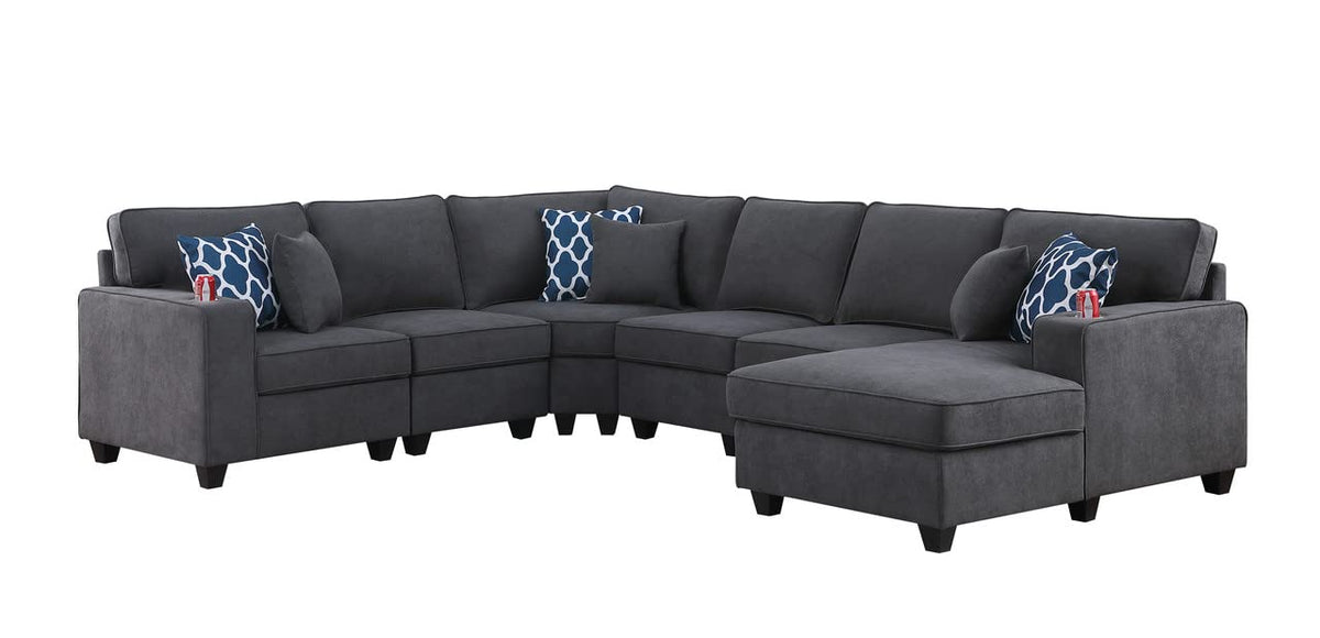 Lilola Home Cooper Stone Gray Woven Fabric 6Pc Modular Sectional Sofa Chaise with Cupholder