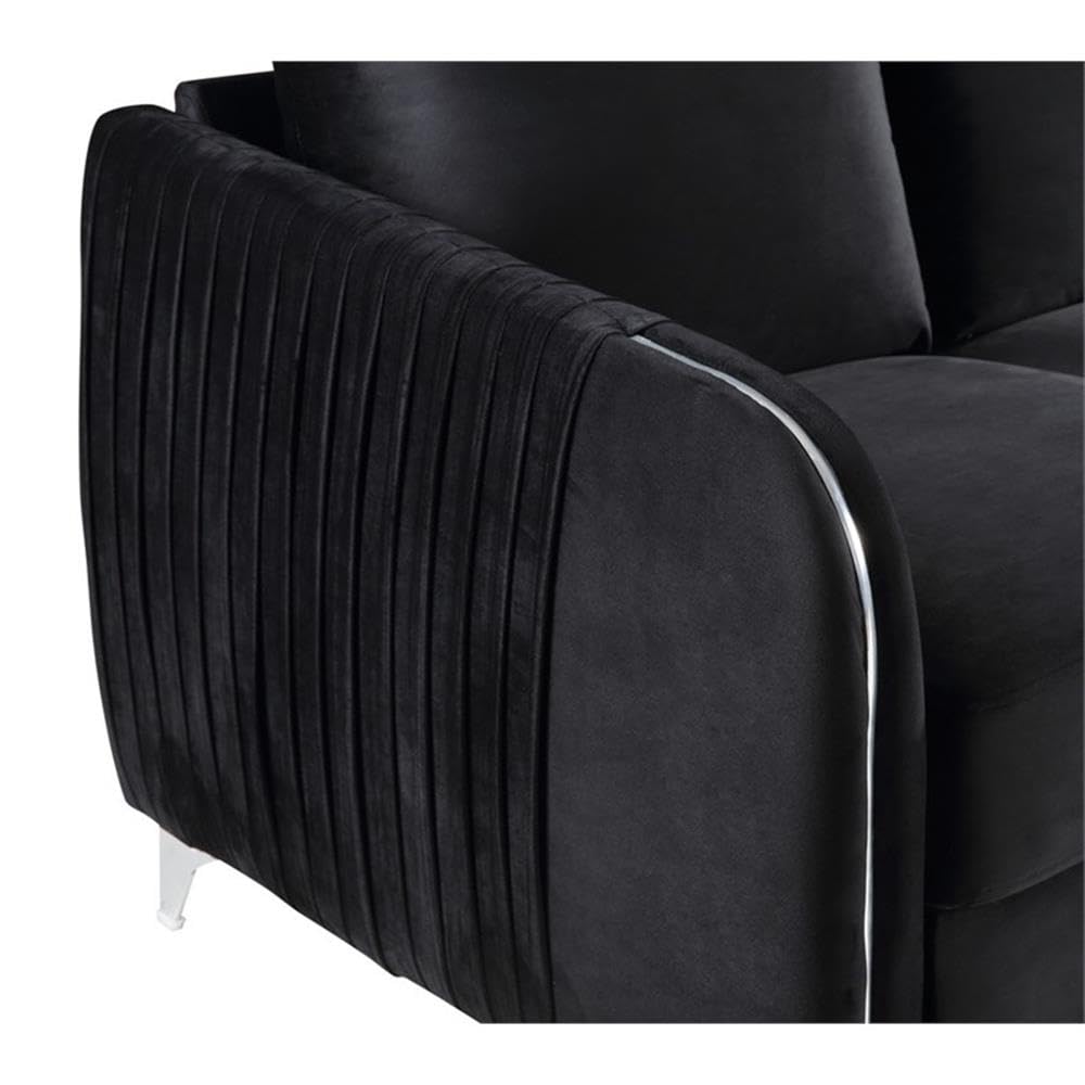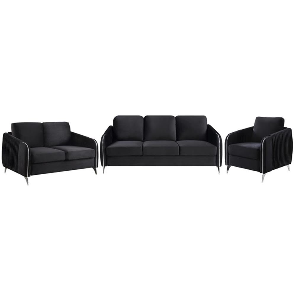Lilola Home Hathaway Black Velvet Fabric Sofa Loveseat Chair Living Room Set