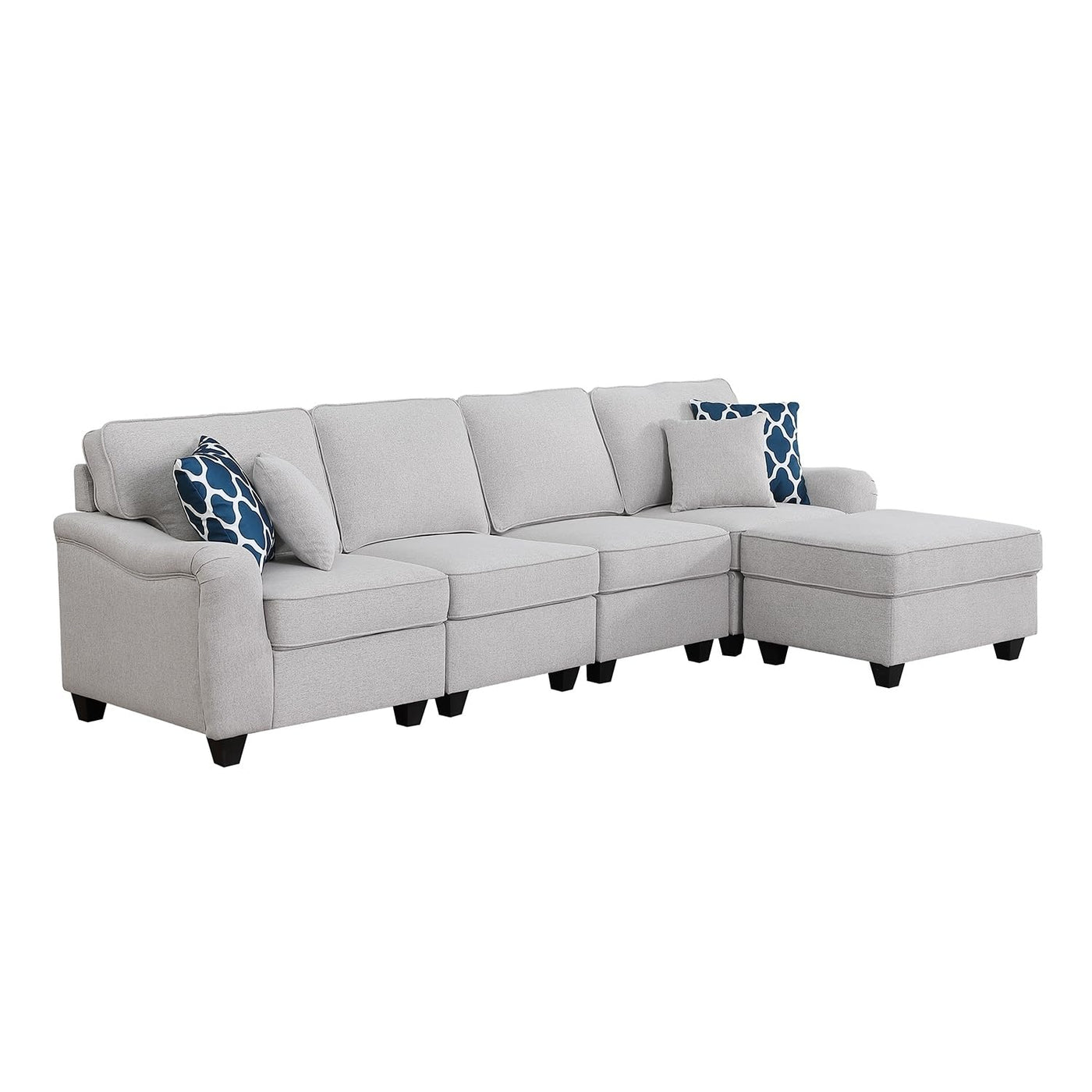 Lilola Home Leo Light Gray Linen 5 Seater Sofa and Ottoman