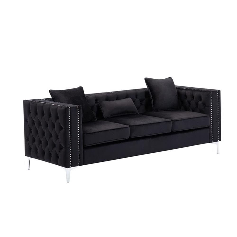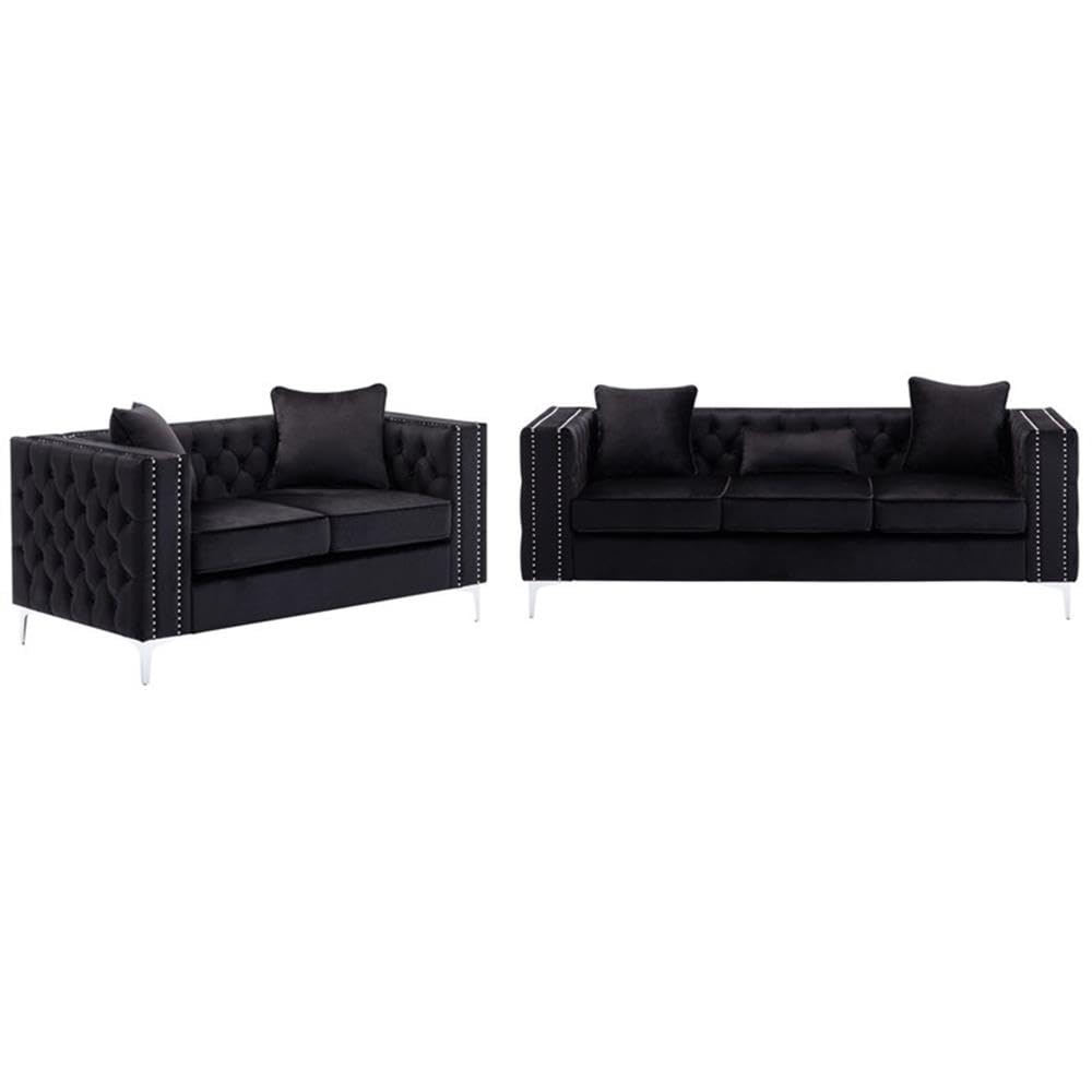 Lilola Home Lorreto Black Velvet Fabric Sofa Loveseat Living Room Set