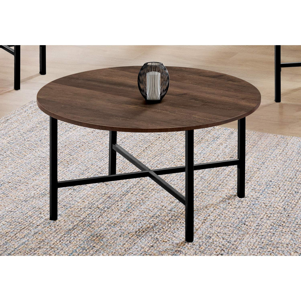 Monarch Specialties Coffee Set of 3 for Living Room Round Metal Legs includes Cocktail 2 End Ocassional Table Set, Brown