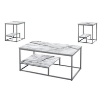 Monarch Specialties I 7963P Table Set, 3pcs Set, Coffee, End, Side, Accent, Living Room, Metal, Laminate, White Marble Look, Grey, Contemporary, Modern