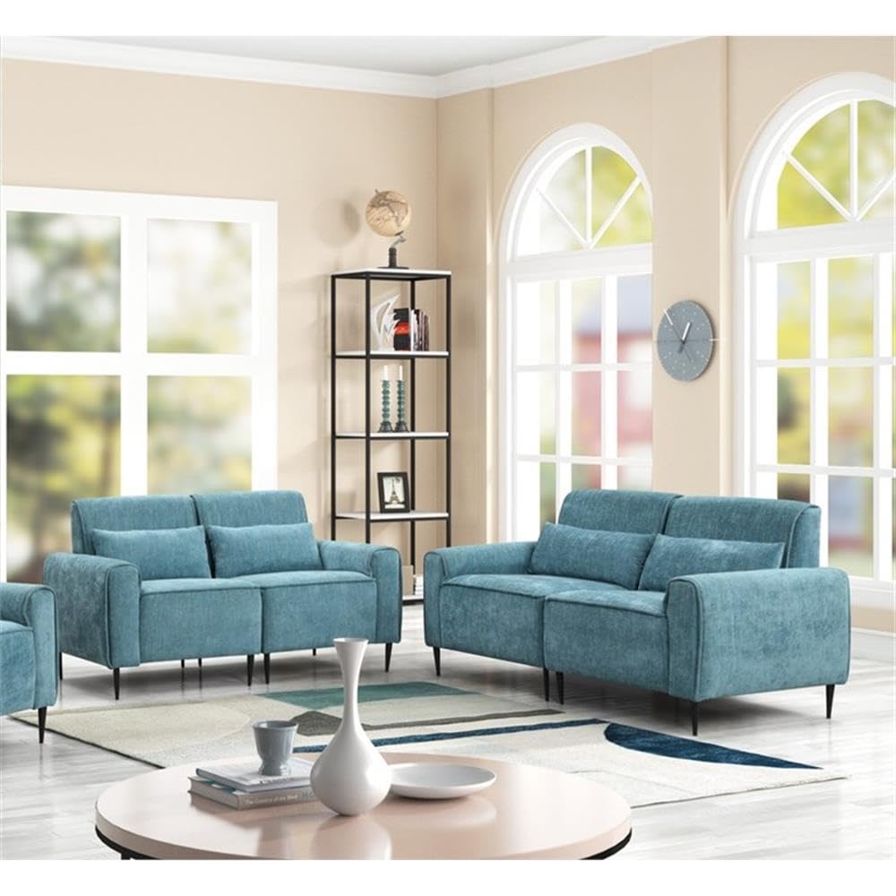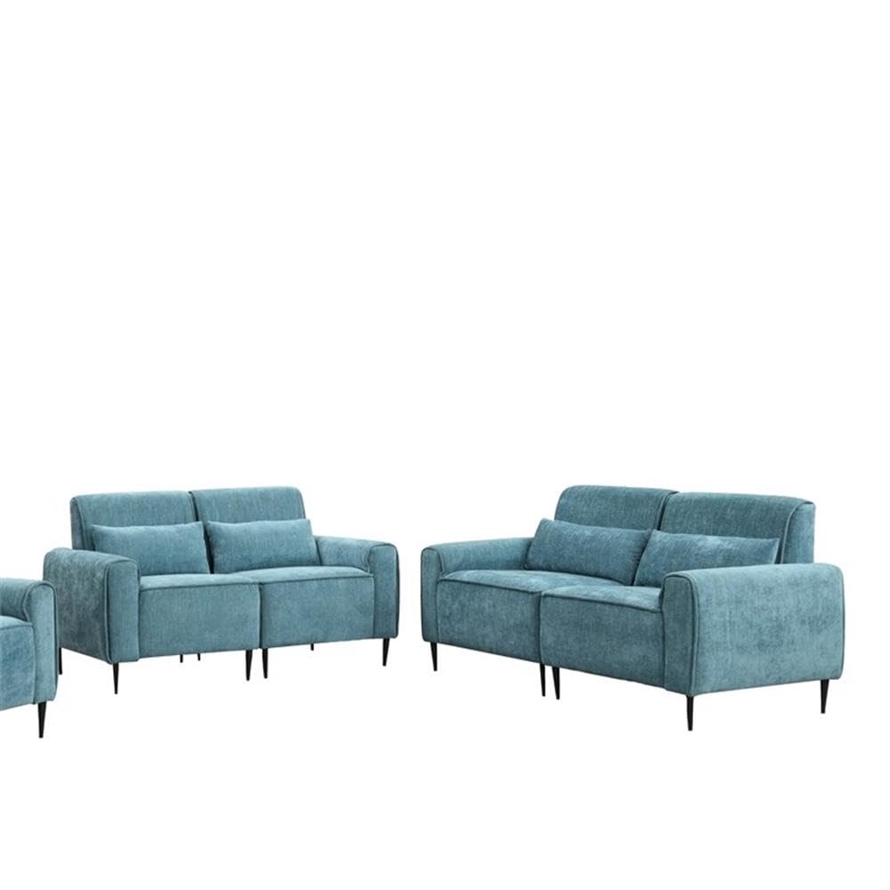 Valentina Blue Chenille Sofa Loveseat Living Room Set