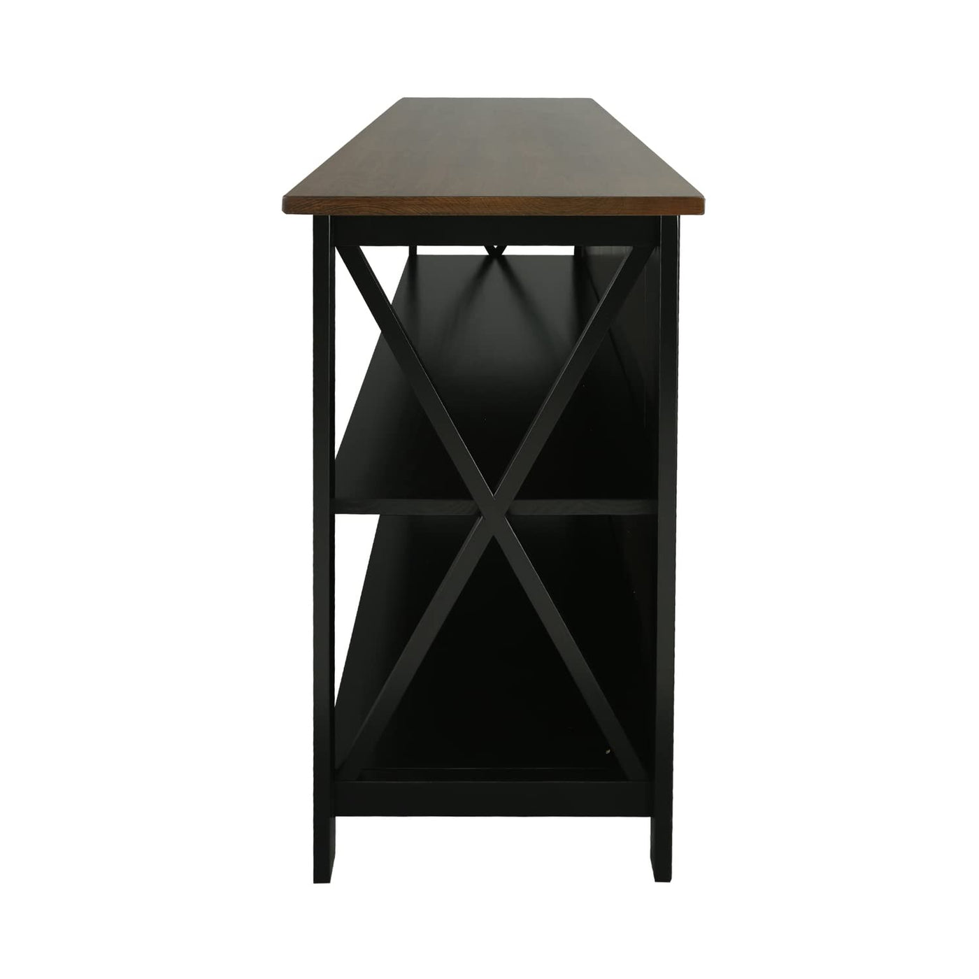 Minimalistic and homely, this TV stand is a perfect match with any entertainment system chosen. With an upper shelf made of solid American Cherry wood and 2 spacious shelves made of solid Pine wood, this table provides plenty of storage for the media that may be retrieved at any time. The Matte black frame accentuates the Cherry brown top to showcase the beauty of American Cherry.