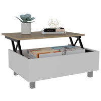 Aran Lift Top Coffee Table, Storage Compartment, White/Light Oak
