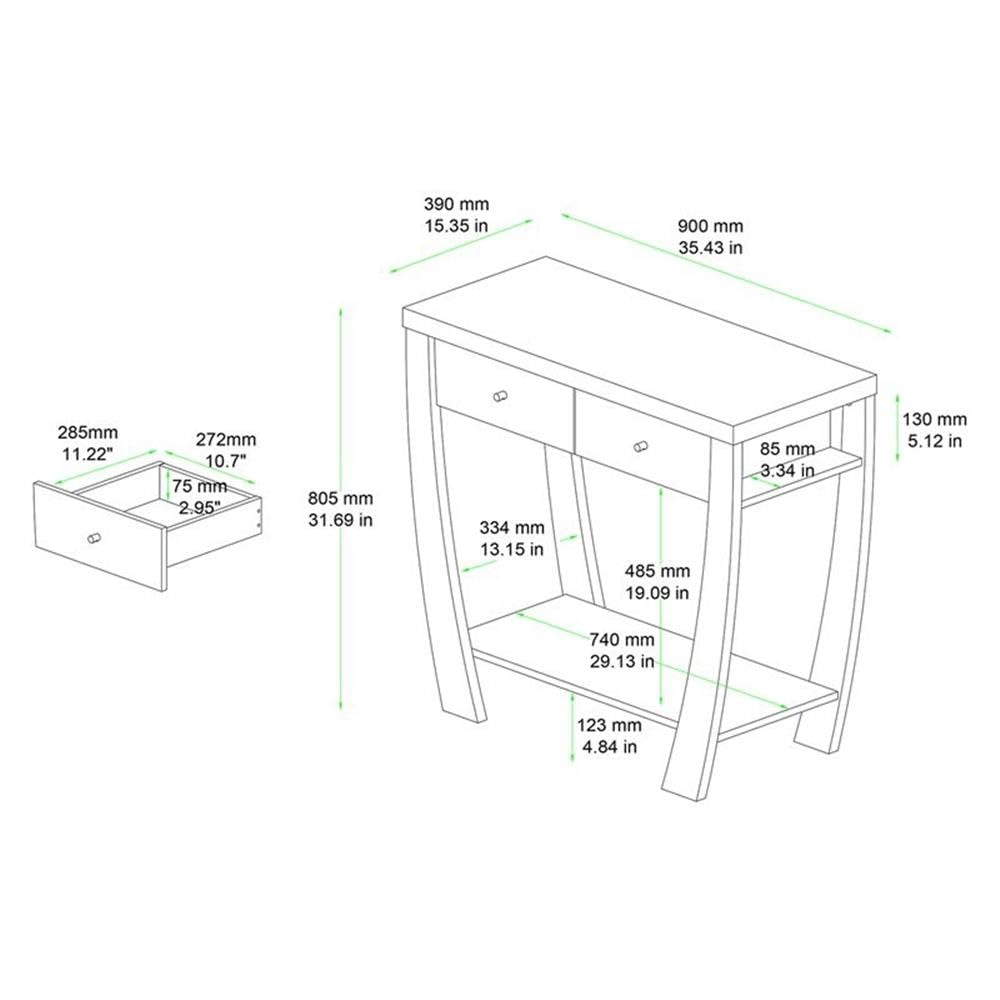 - Constructed from engineered wood - Walnut brown finish - Two (2) drawers - One (1) shelf - Round rubberwood knobs - Anti-topple kit included - Assembly required.