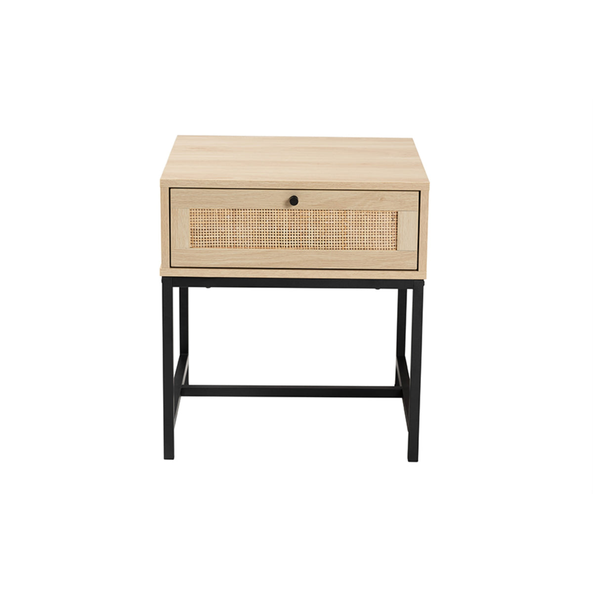 Baxton Studio Caterina Natural Brown Wood and Natural Rattan 1-Drawer End Table