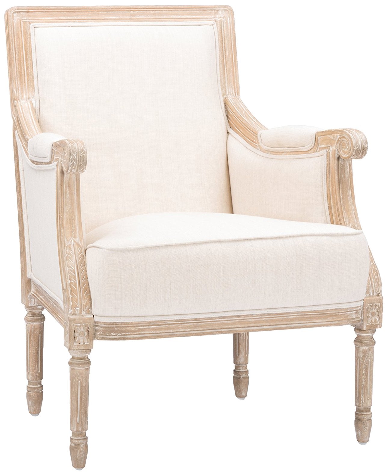 A Distressed, Antiqued Finish Complete With Authentic White Streaking Distinguishes Our Chavanon Wood Traditional French Accent Chair Within The Discount-Furniture Arena. Bringing Traditional Style To The Modern Age, This Accent Chair Offers Visually Versatile Foam-Cushioned, Beige Cotton Upholstery. The Combined Contoured And Straight-Edged Mindi Wood Frame Speaks Elegance While Offering Superior Stability.