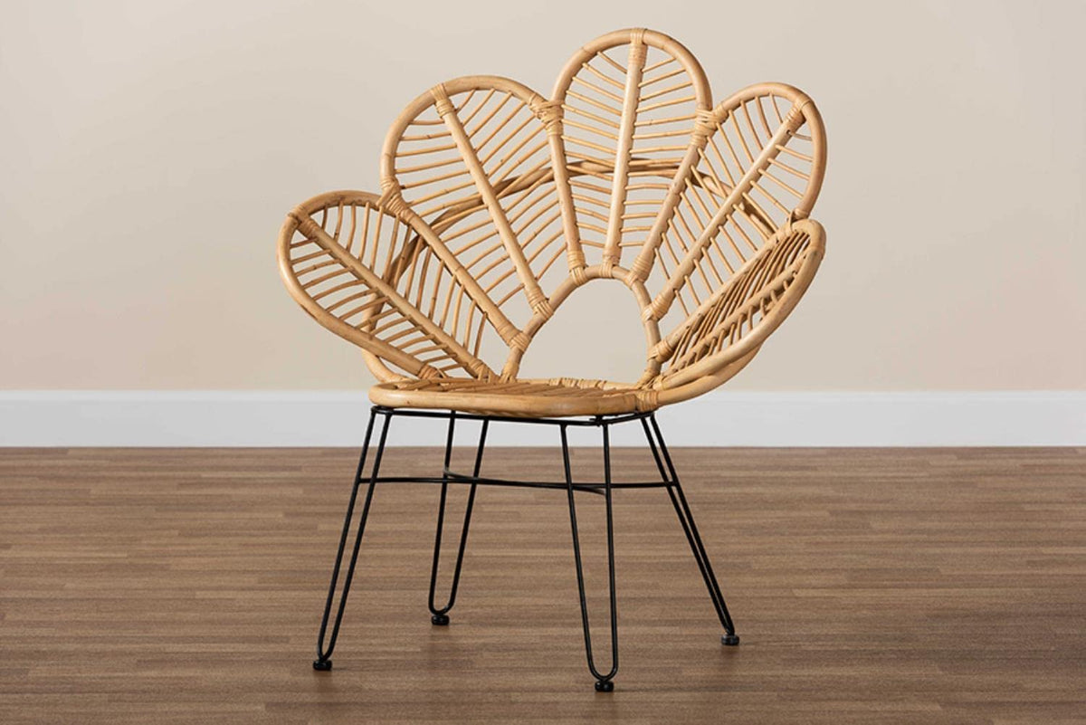Baxton Studio Garan Modern Bohemian Natural Brown Rattan and Black Metal Accent Chair