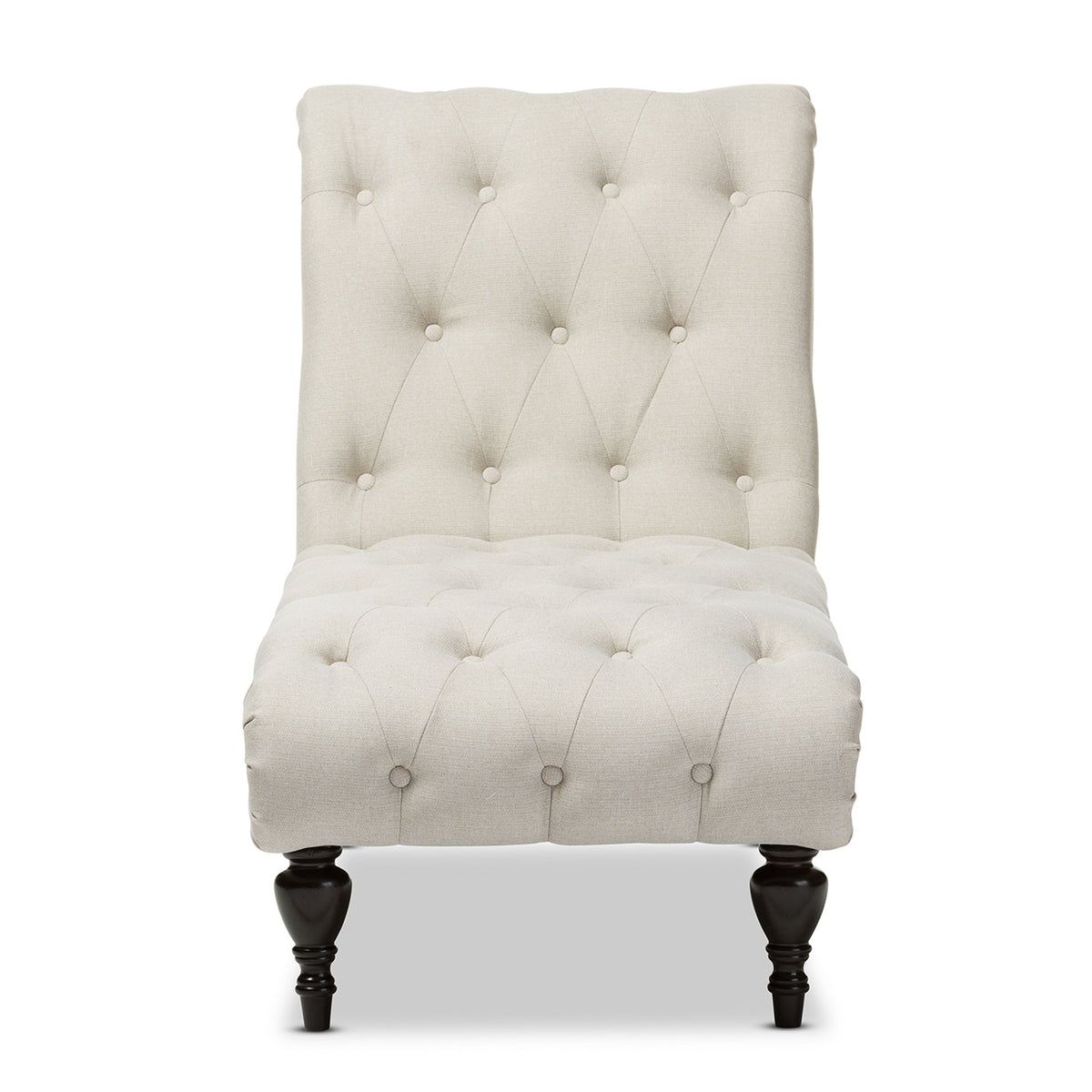 Baxton Studio Layla Mid-century Modern Light Beige Fabric Upholstered Button-tufted Chaise Lounge, cream