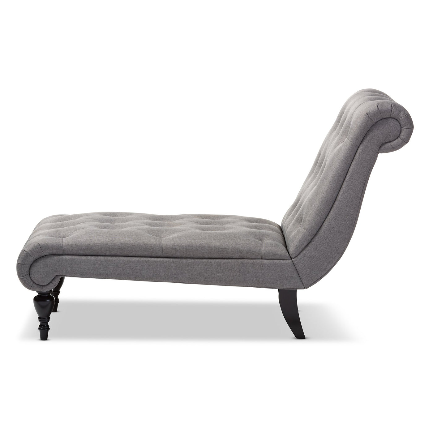 Baxton Studio Layla Mid-century Retro Modern Grey Fabric Upholstered Button-tufted Chaise Lounge, Grey