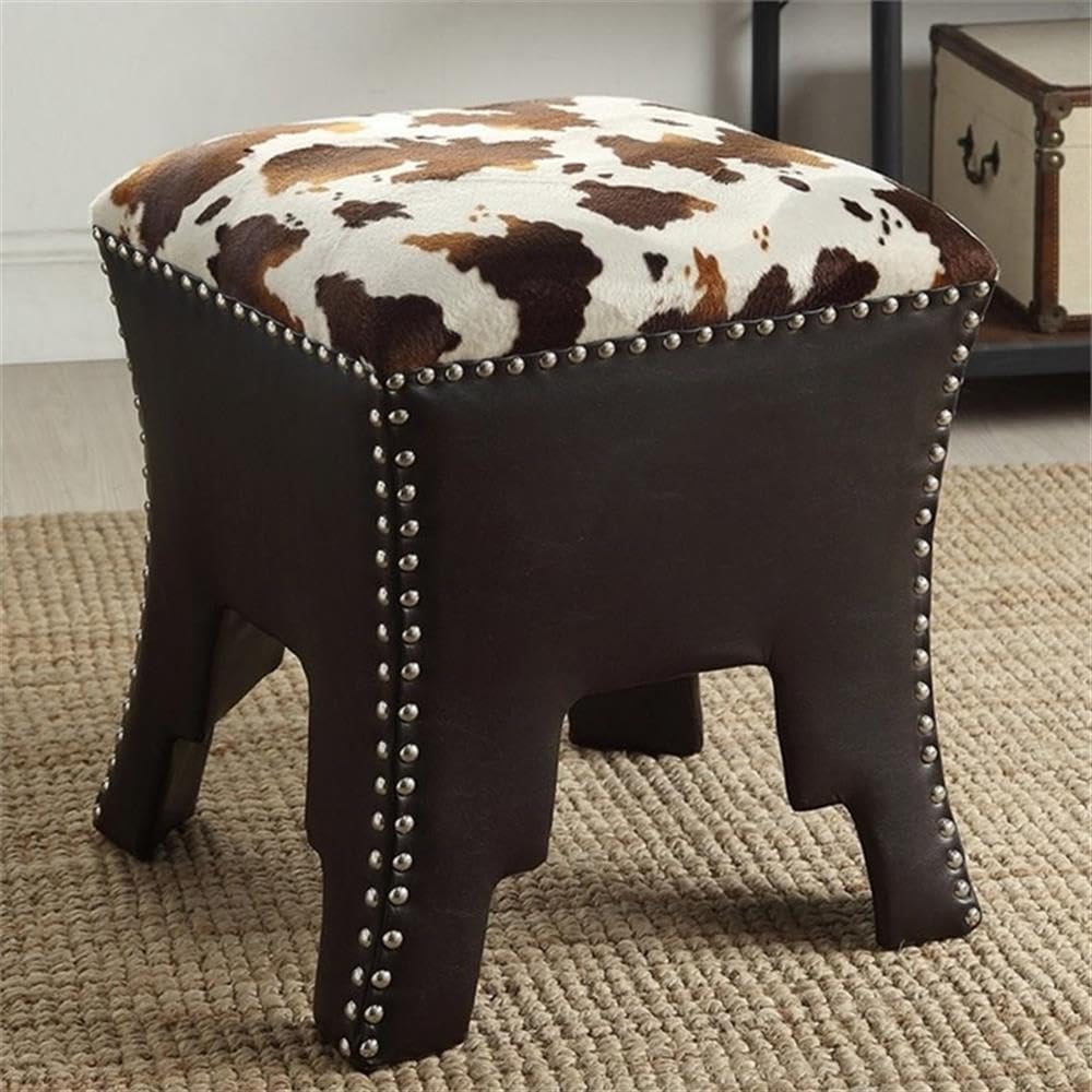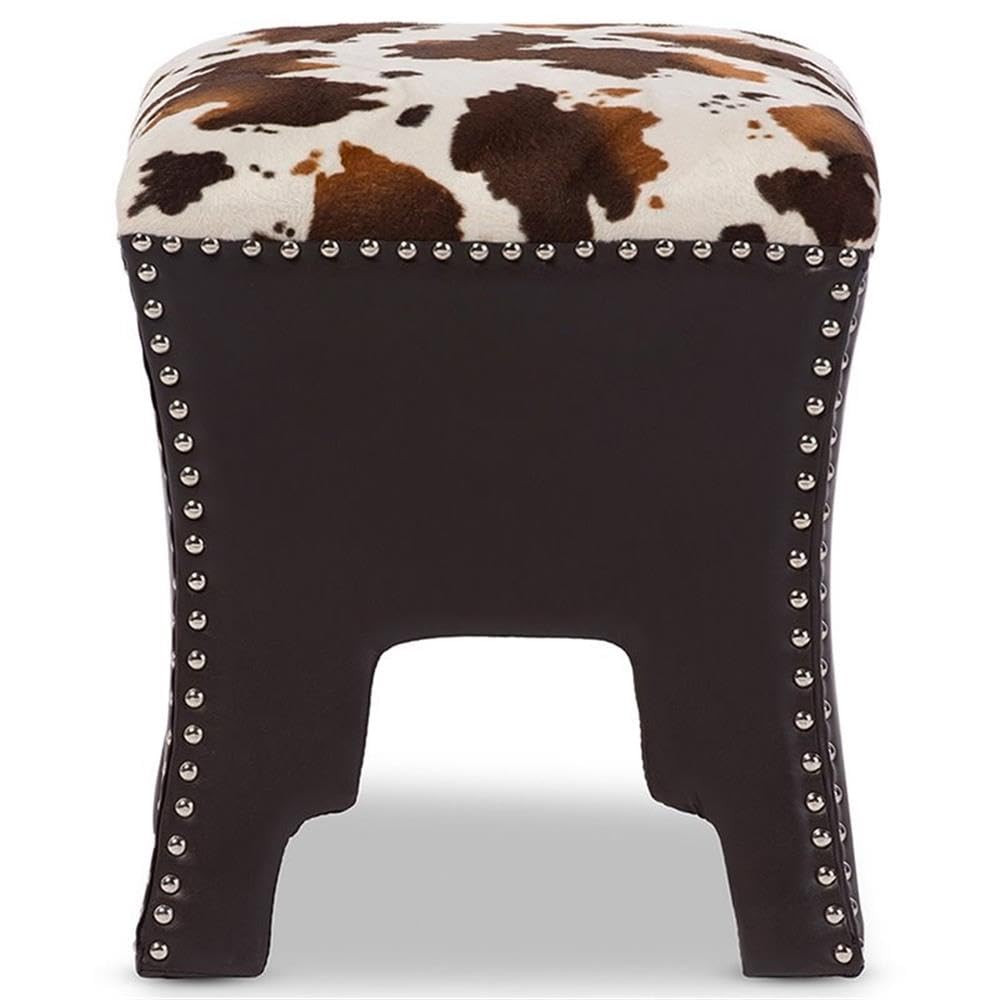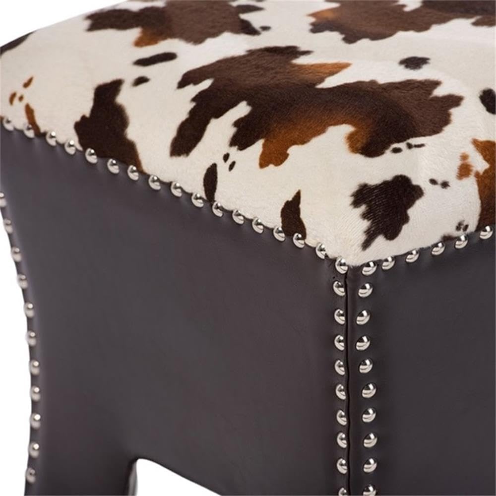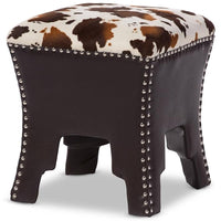 Baxton Studio Sally Modern and Contemporary Cow-Print Patterned Fabric Brown Faux Leather Upholstered Accent Stool with Nail Heads, Single-Piece