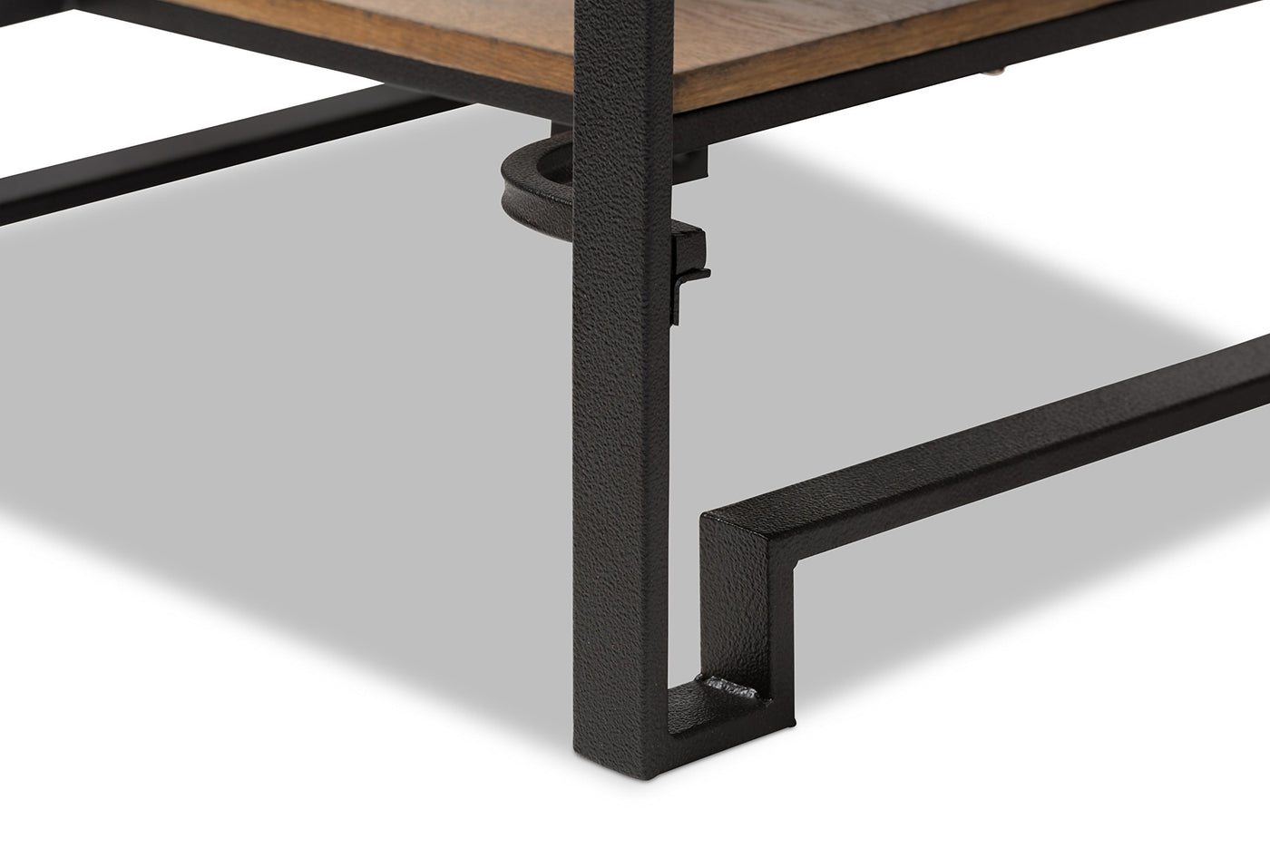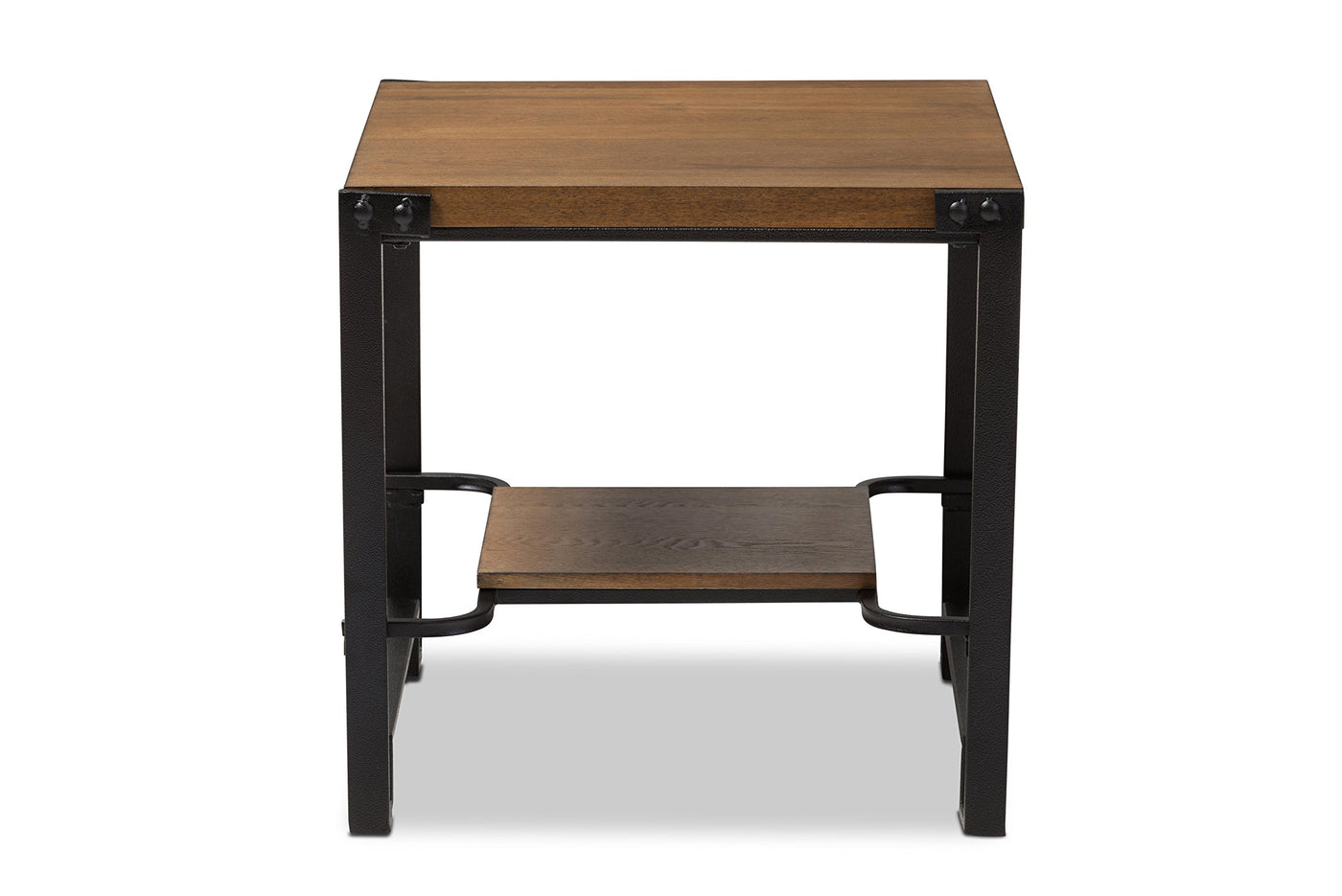Baxton Studio Solen Antique Black Textured Finished Metal Distressed Wood Occasional End Table