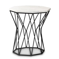 Baxton Studio Venedict Modern and Contemporary Black Metal End Table with Marble Tabletop