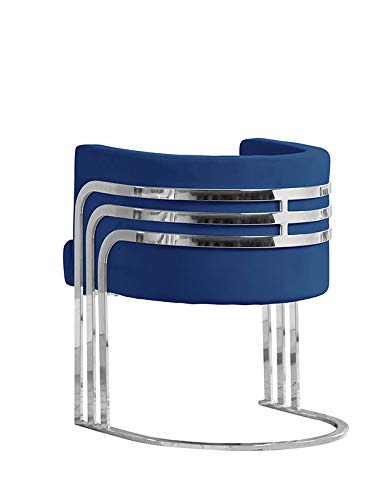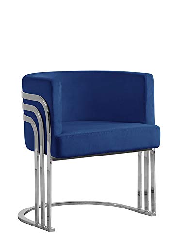 This elegant chair was designed from the ground up to add a sophisticated, contemporary touch to any room in your home. Come in single chair, featuring stunning silver legs, ensuring longevity, strength and beauty. Available in four different upholstery color/finish options (Dark gray Velvet (AC223), Navy blue velvet (AC225), Black Velvet (AC225), Beige Velvet (AC226) , allowing for an array of customization in any living space. Features: Includes pne single chair Contemporary / Glam style Silver legs Elegant design Color: navy blue velvet upholstery Sturdy build construction Dimensions (Height x Length x Width) inches: Chair: Overall: 29 inches H x 24 inches L x 23 inches W