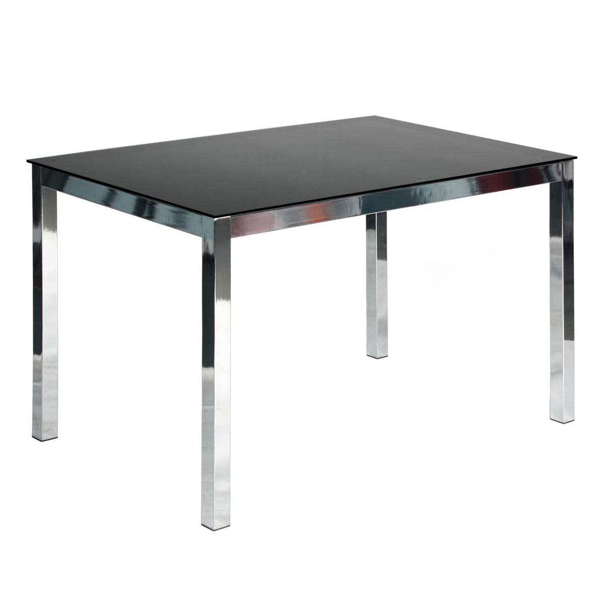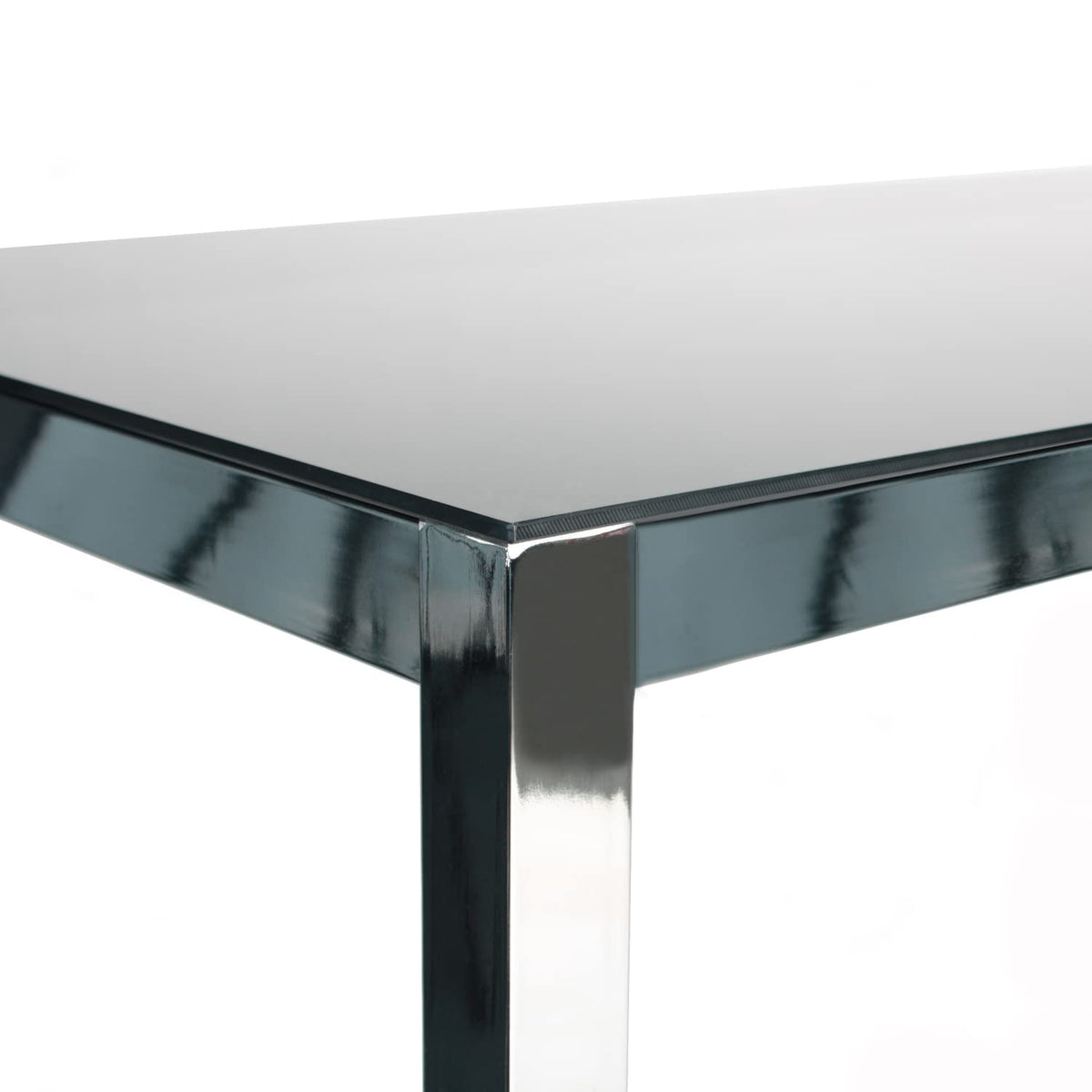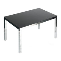 Whether dining or working on your next DIY masterpieces, the Better Home Products Elliott Chrome Metal Frame Black Tempered Glass Table is an ideal anchor for your home. Clean-lined and understated, it showcases metal frame awash in chrome finish for a touch of contemporary style. Up top, the rectangular tabletop made from black tempered glass brings modernity and stylish up-to-date impression. This versatile and multifunctional table can be used to perch your laptop in your home office, framed family photos, potted plants, or use as dining table (can comfortably seat 4) to transform your dining room into a modern space.