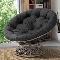 Metal Oversized Swivel Papasan Chair Black Cushion - Gray Framerelax In Style With The Metal Oversized Swivel Papasan Chair, An Ideal Blend Of Comfort, Durability, And Modern Design. The Oversized Frame And Plush Cushion For Papasan Chair Create A Cozy Retreat, Making A Versatile And Stylish Addition To Any Home.Key Features:- Oversized Design: Spacious 42'D X 46'W X 36'H Frame Provides Ample Room For Lounging.- Soft Cushion: Ultra-Plush, 6 3/4-Inch Thick Black Cushion Ensures A Cozy Experience.- Secure Straps: Three Stylish Straps Keep The Cushion In Place While Adding A Polished Look.- Durable Resin Wicker: Gray Woven Frame Pairs Durability With A Modern Aesthetic.- 360-Degree Swivel: Smooth Rotation Allows Effortless Repositioning.- Ergonomic Metal Frame: Lightweight Yet Sturdy Design Supports Up To 400 Lbs For Indoor Use.Why Choose Us?The Metal Oversized Swivel Papasan Chair Elevates Any Space With Comfort, Durability, And Modern Aesthetics. Designed For Those Who Value Functionality And Style, The Chair Seamlessly Fits Both Cozy Apartments And Spacious Homes.A Statement In Comfort And Stylecombining An Oversized Frame, Plush Cushion, And Woven Resin Wicker, Our Chair Adds Sophistication To Any Room. The 360-Degree Swivel Function Enhances Convenience, Making The Design An Ideal Choice For Everyday Lounging.Create A Cozy Corner With The Metal Oversized Swivel Papasan Chair. As A Saucer Chair Alternative Or A Comfy Chair For Bedroom, Its Plush Design Enhances Any Space. Ideal As Bedroom Chairs For Adults Or A Lounge Chair For Bedroom, Our Luxurious Room Chair Becomes Your Ultimate Spot To Unwind.