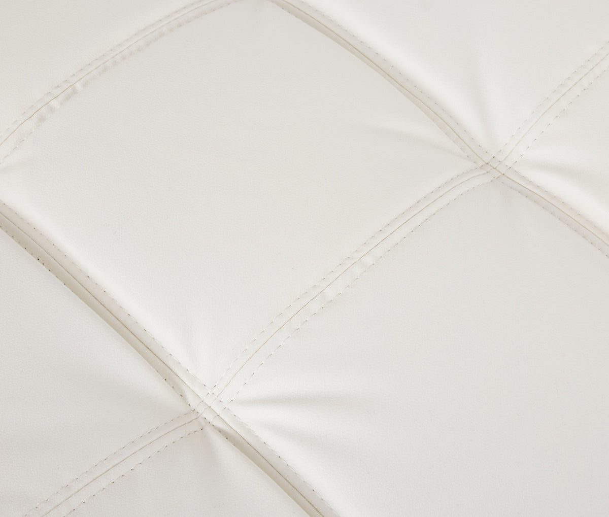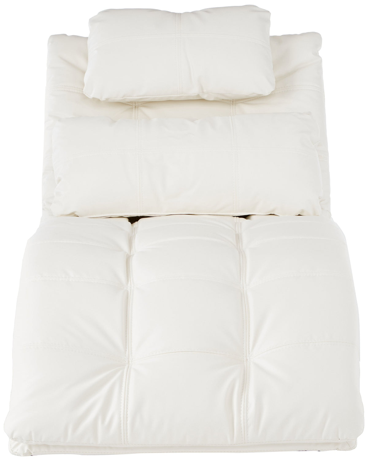 Set aside a spot for comfy resting in a modern space. This excellent chaise offers the ergonomic benefits of a contoured lounge with an eye-pleasing design. Covered in white leatherette, it's both easy to care for and versatile enough to blend in a number of design schemes. Plush channeled padding and a pillow offer extra sensory pleasure. Stylish chrome finish metal feet pad its modern ambiance.