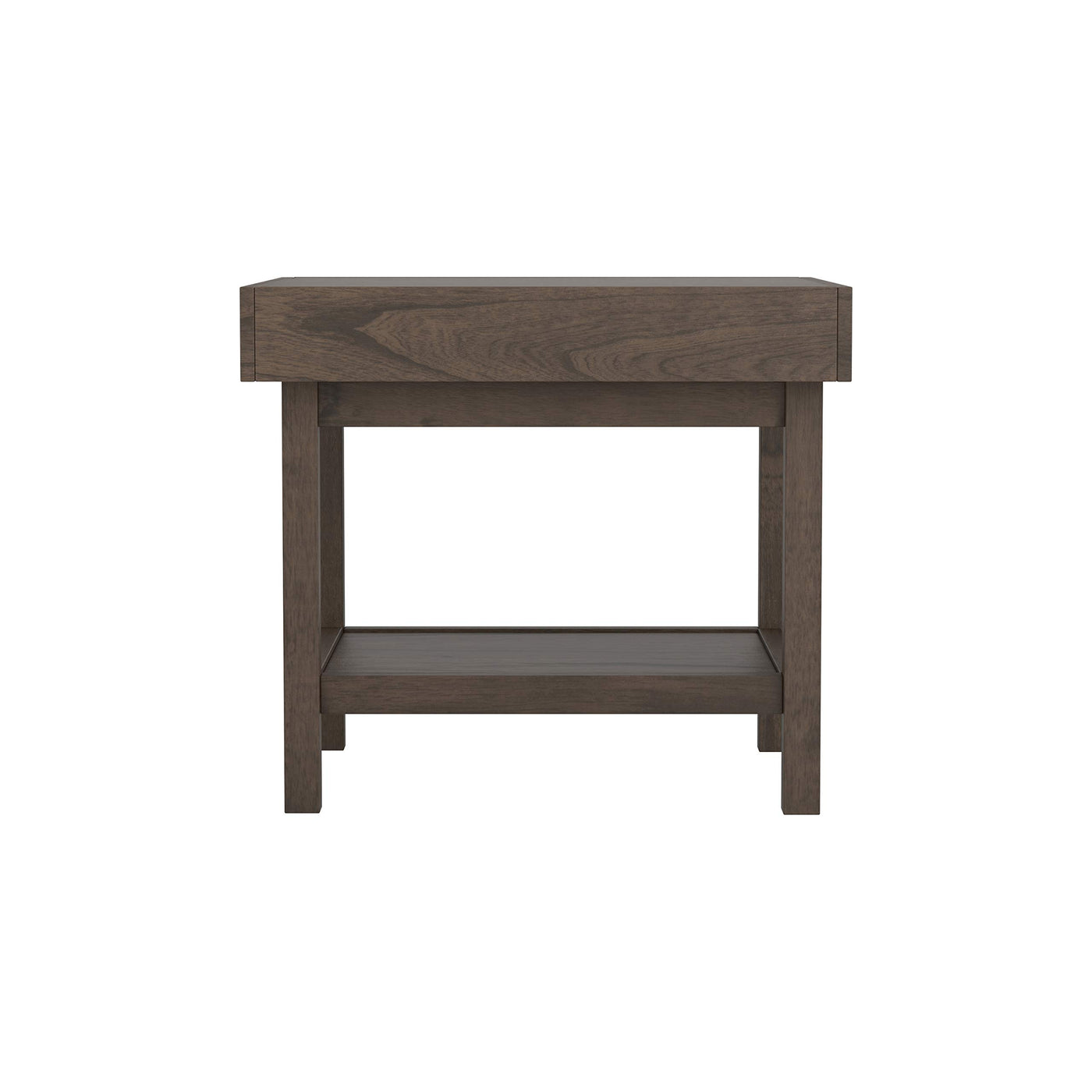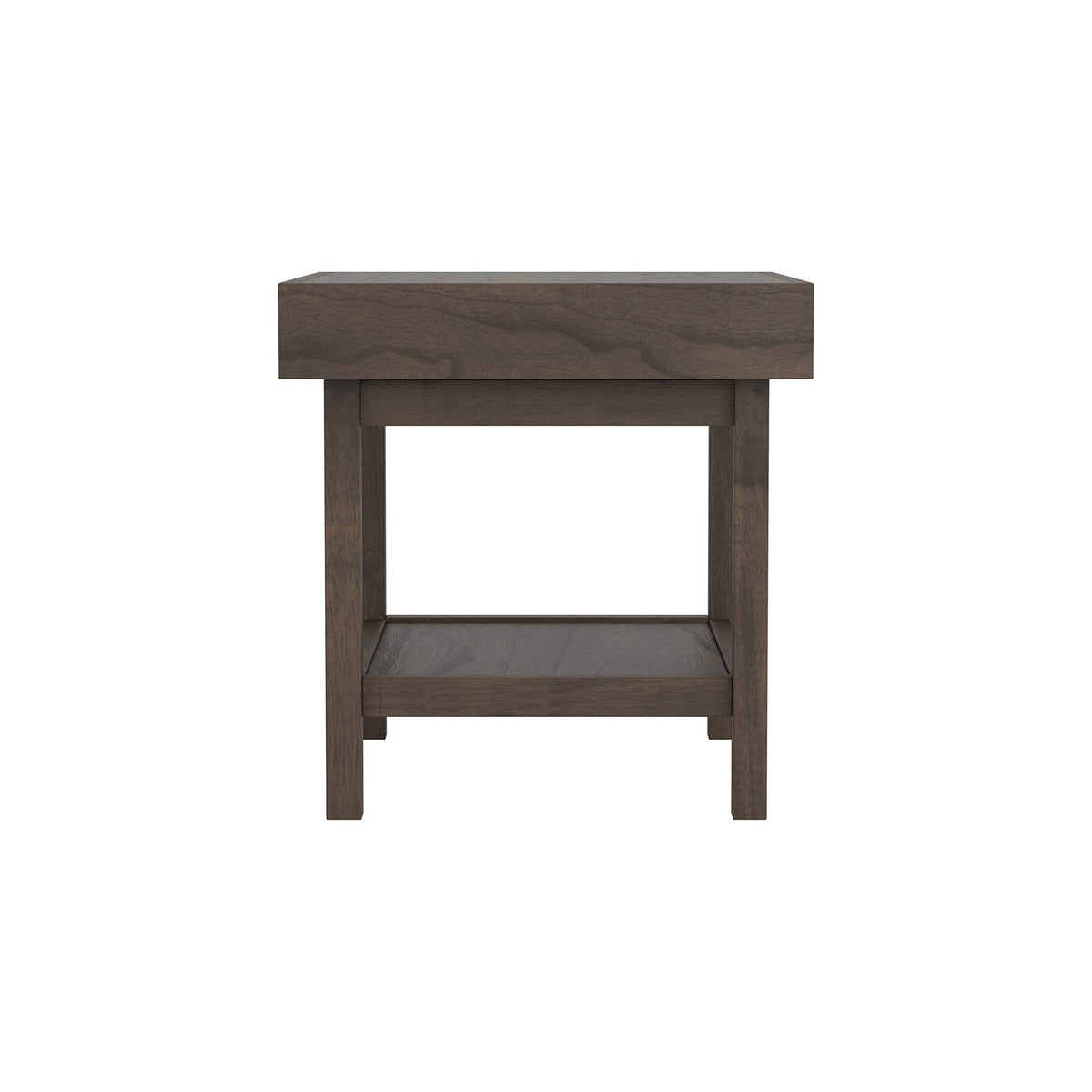 Make your decor pop with an eye-catching update that works well in most any space.This modern end table offers a perfect blend of convenience and elegance.Its bold silhouette is treated to a wheat brown finish with a wire brushed veneer for a hint of classic style.The hidden felt-lined drawer provides a secure stash spot for valuable items.The open storage shelf underneath is ideal for storing books, magazines, and other lounging essentials.