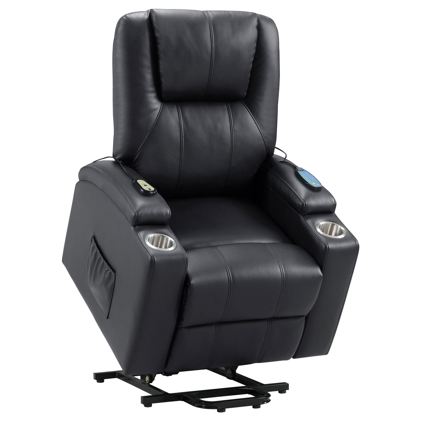 This power lift recliner delivers premium comfort and functionality, perfect for relaxing in style. The chair features luxurious faux leather upholstery and an ergonomic design to support your body at every angle. The power lift mechanism ensures easy movement in and out of the chair, offering assistance for standing or sitting with minimal effort. With integrated cup holders and side storage pockets, convenience is at your fingertips. The chair also includes massage and heat functions, allowing you to unwind and soothe your muscles after a long day. The wireless remote control provides effortless operation of all features, from reclining to massage intensity.