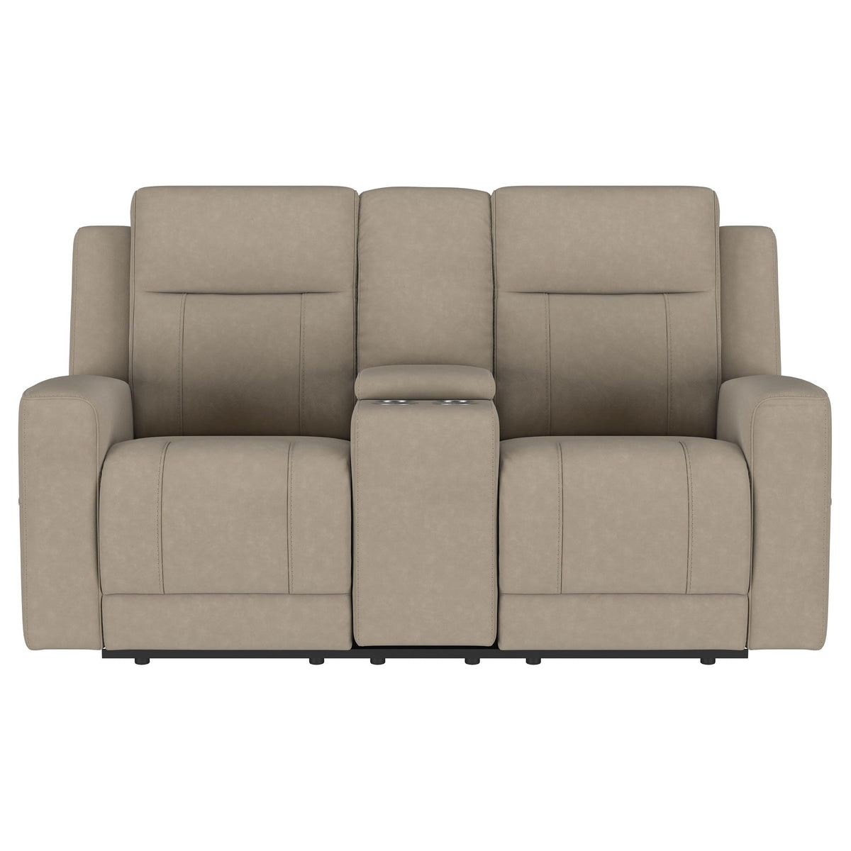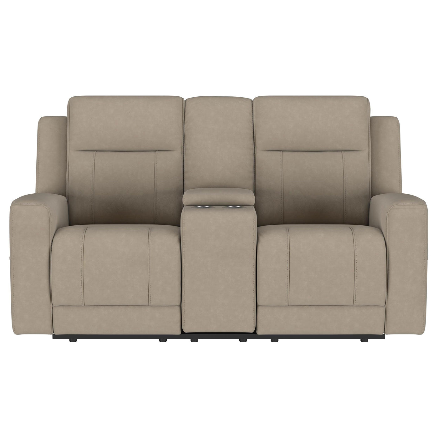 Coaster Home Furnishings Brentwood Upholstered Motion Reclining Loveseat with Console Taupe