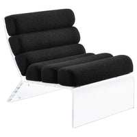 Discover a fusion of contemporary design and luxurious comfort in this accent lounge chair, where horizontal channeling meets the rich texture of bouclé fabric. The thick, clear acrylic frame, crafted with the highest quality, surrounds the upholstered elegance, creating a sophisticated floating effect. Each line of channeling invites you to experience comfort tailored for relaxation, while the chair's transparency blends with its environment, offering a seamless flow of style. This isn’t merely furniture; it’s a centerpiece that commands attention without overshadowing the room. Revel in the blend of plush comfort and flawless clarity that this chair brings to your cherished living space.