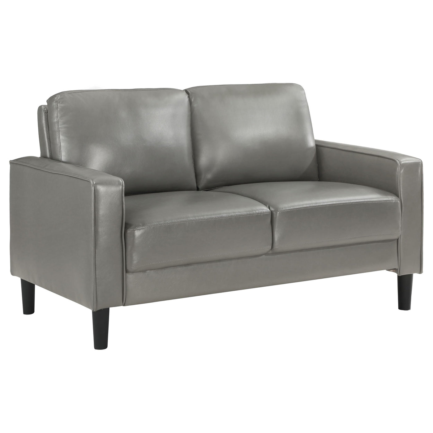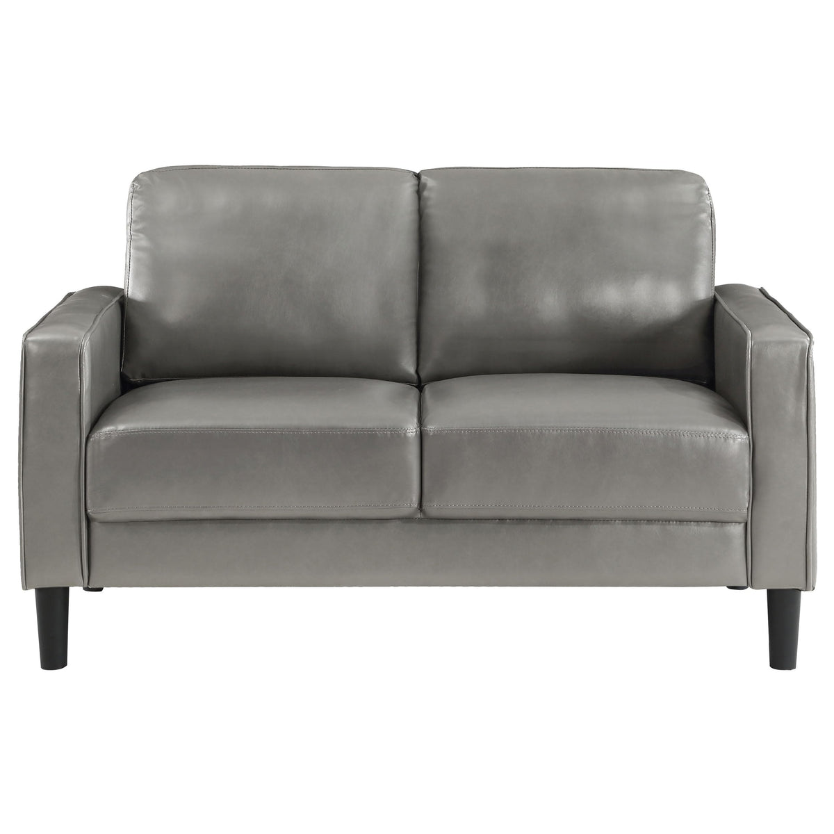 Coaster Ruth Upholstered Track Arm Faux Leather Loveseat Grey