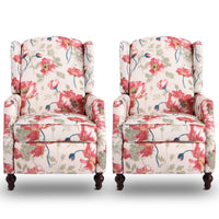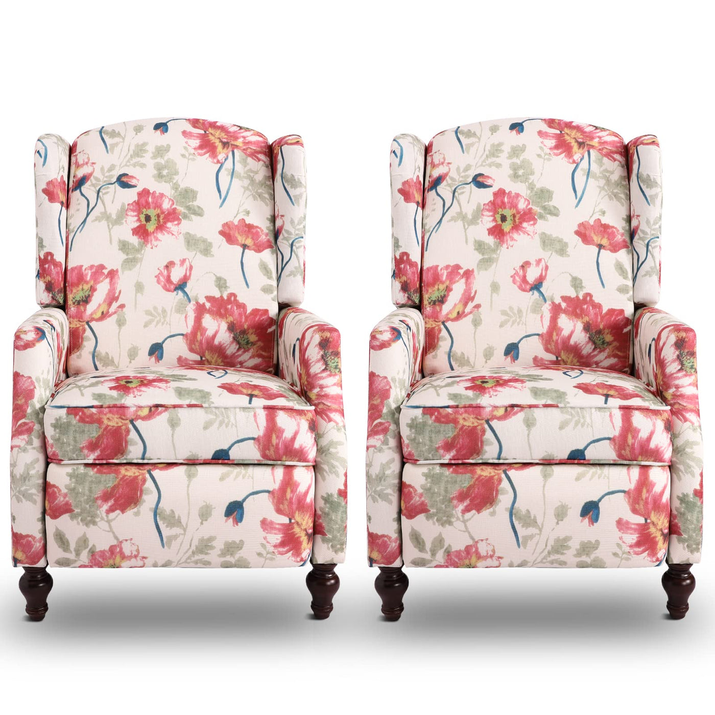 Consofa Wingback Recliner Chair, Traditional Push Back Recliner With Padded Seat, Wingback Fabric Floral Recliner, Mid Century M