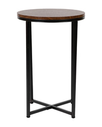 Update the atmosphere in your home with the sophisticated, polished look of this mixed media end table. Featuring a walnut finished laminate top, this occasional table blends seamlessly in any space. The round shape atop modern crisscross matte black metal legs completes the overall look of this stunning piece. Whether you're serving coffee, tea, or just want a place for decorative items, you will never have to worry about the safety of this table. The strong .5 inch thick engineered wood top stands up to daily use while the sturdy cross brace metal frame holds up to 55 lbs. static weight capacity. A durable powder coated finish ensures this living room table will look great for years to come. Have your new end table ready to use in under 30 minutes with the included step-by-step instructions and included tools. Floor glides will protect your hard flooring surfaces from scuffs and scrape and messes clean up quickly and easily with a water based cleaner.