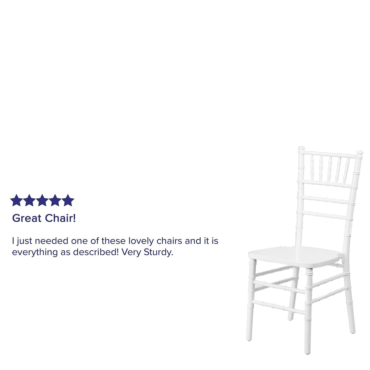 Add elegant style and functionality to your venue with the Flash Furniture Hercules Series Chiavari Chairs. Whether you're hosting a seminar, wedding, banquet, or other special event, this stacking adult size chair offers a reliable, on-demand seating solution for commercial use. The elegant design with an eye-catching, sophisticated white finish makes this chair a great option to use anywhere from Tuscany to the White House. Constructed from ultra-strong wood materials, this banquet chair withstands years of quality use at indoor or outdoor events and supports up to 1,100 pounds of static weight. It's lightweight and easy to move yet super durable, strong, and wobble-free. The beautiful event chair ships fully assembled so you can start setting up for events right away, and the chairs can be stacked up to 10 high for compact storage after use. The chair measures 15.75"W x 18"D x 36.25"H with a 15.75"W x 15.75"D x 17.75"H seat size and 14.5"W x 19.25"H back size.
