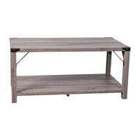 Flash Furniture Wyatt Modern Farmhouse 2 Tier Coffee Table - Gray Wash Engineered Wood Frame - Black Metal Crisscross Side Braces and Corner Accents