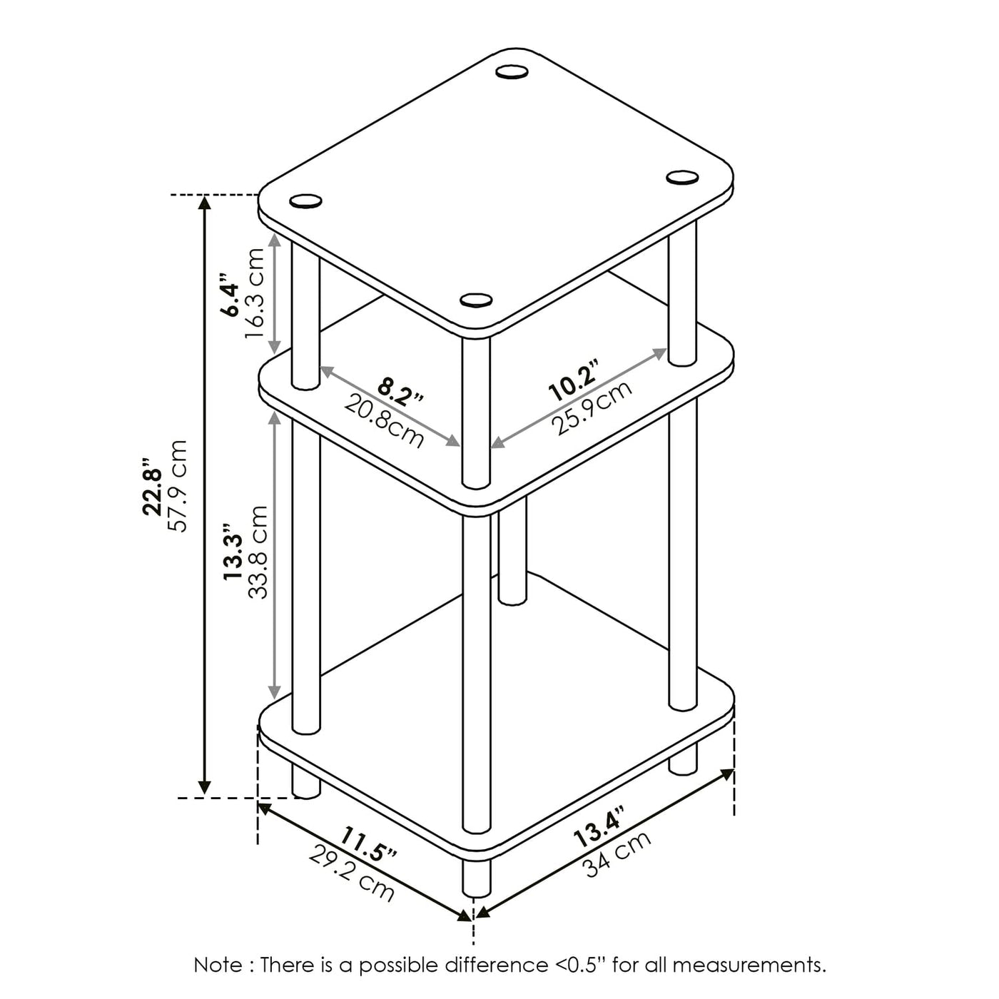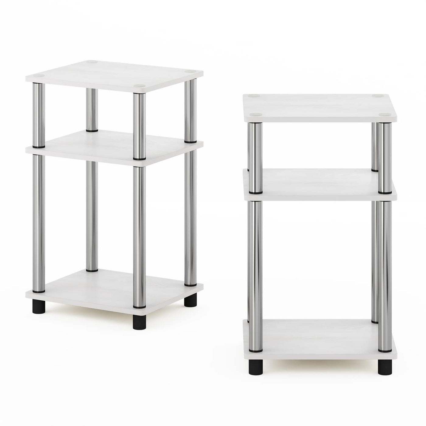 Furinno Simplistic End Side Night Stand/Bedside Table with Stainless Steel Tubes, 2-Pack, 2-Tier Poles, White Oak/Chrome