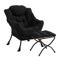 Furlide Lazy Chair With Ottoman, Modern Chair With Folding Footrest, Lounge Accent Chair, Comfortable Reading Chair (Black)