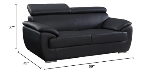 HomeRoots 32" to 38" Captivating Black Leather Loveseat