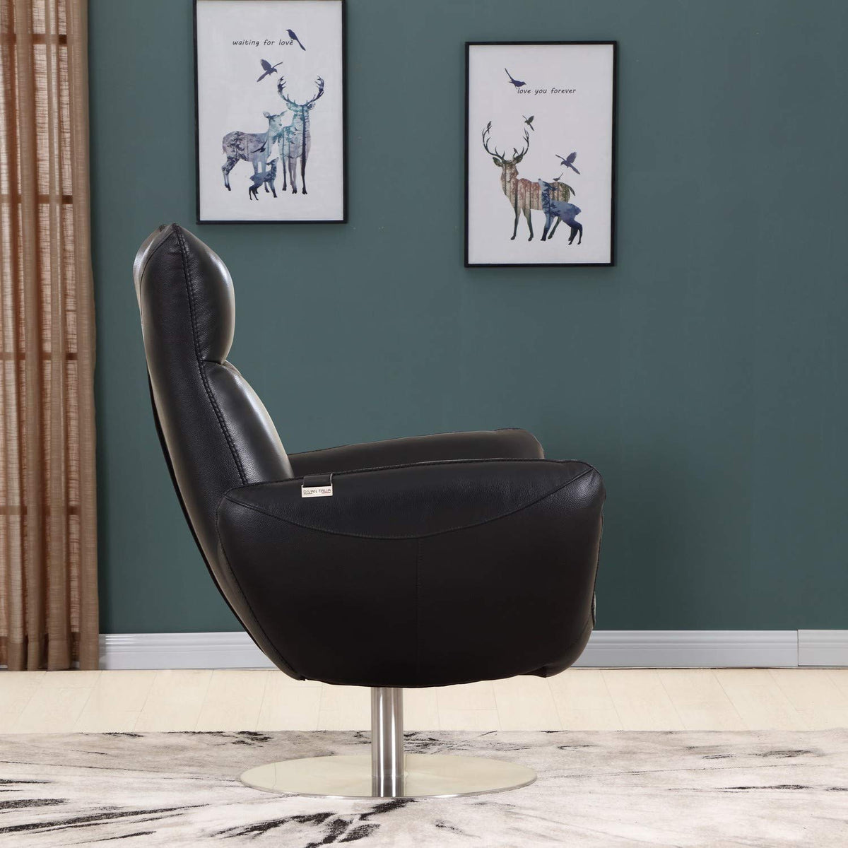 HomeRoots 43" Contemporary Black Leather Lounge Chair