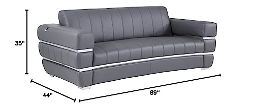 HomeRoots 89" Dark Gray Chrome Accents Genuine Leather Standard Sofa