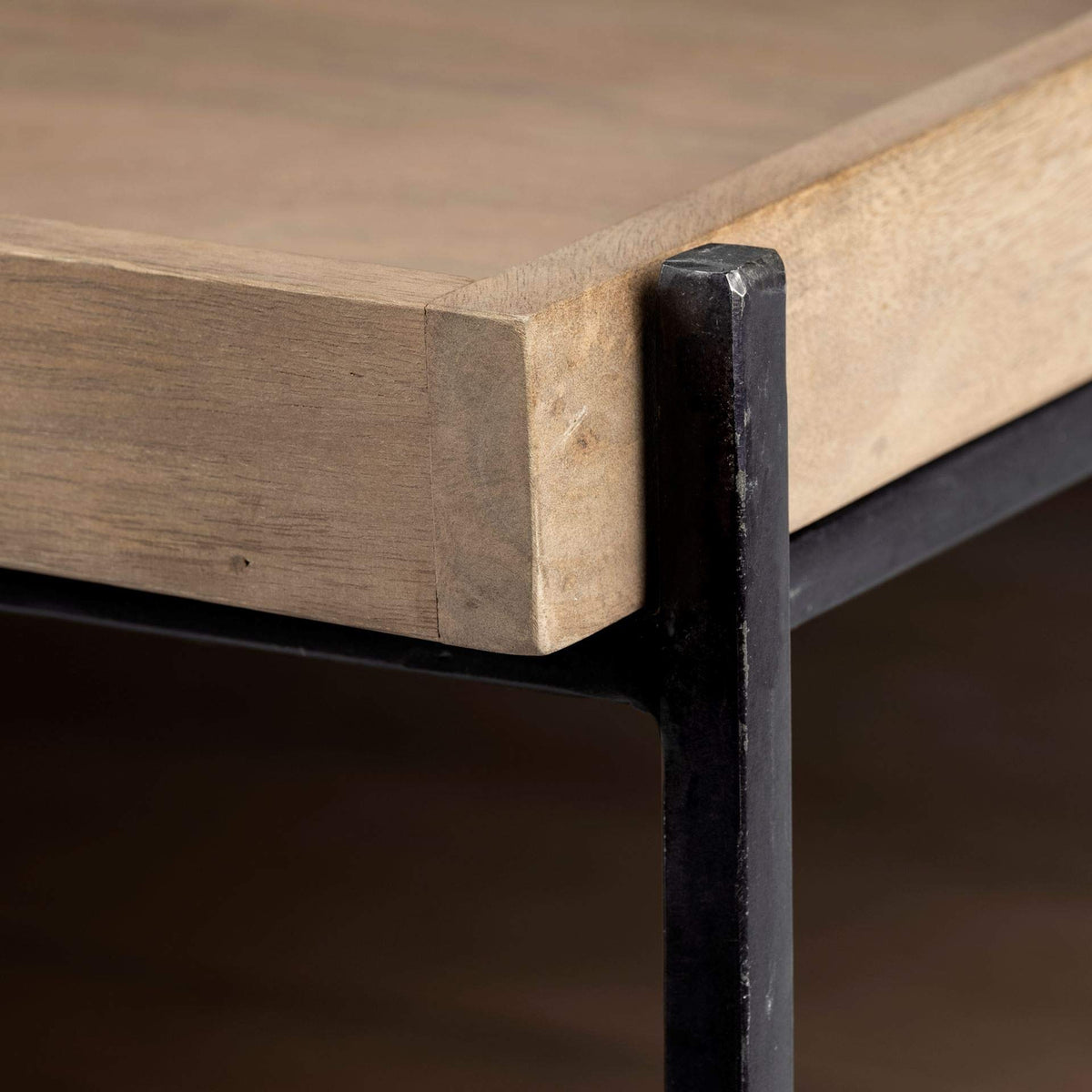 HomeRoots Rectangular Solid Wood Top Table and Black Metal Frame Two-Tier Coffee Table