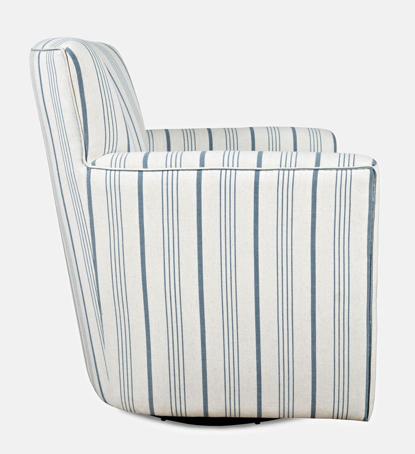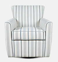 Beautiful contemporary European styling on a functional swivel chair base, the Blakely Harper Accent Chair is the perfect addition to your living room or den with a sophisticated blue stripe pattern. Measuring 32.5"W x 30.5"D x 35.5"H, the soft plush upholstery matches a wide variety of home decor.
