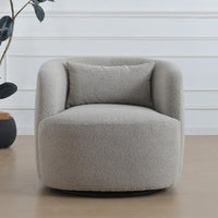 34' Wide Sherpa Swivel Barrel Chair, No Assembly Round Boucle Upholstered Accent Chair Armchair Single Sofa Chair With Toss Pillow For Living Room And Bedroom, Taupe