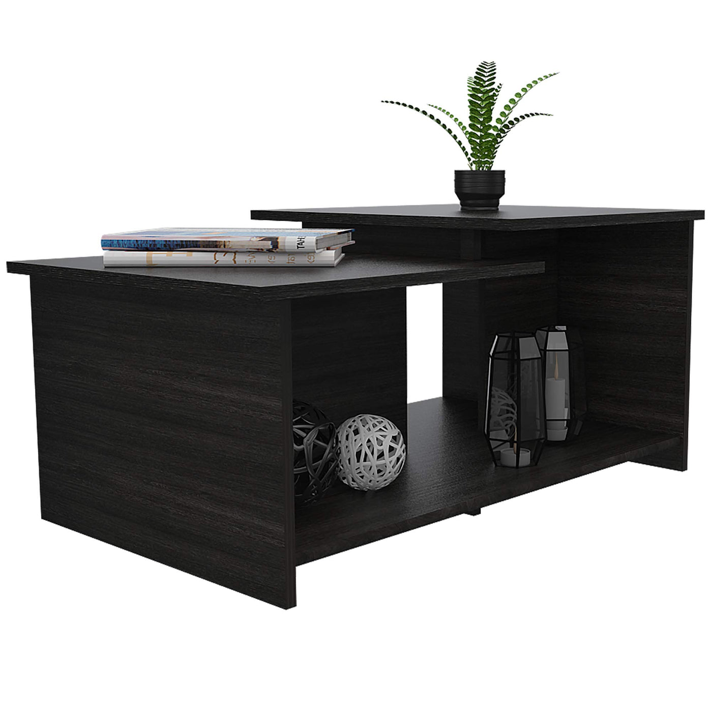 Elevate your living room with the Leanna 3 Coffee Table Coffee Table. The dual-level shelving provides ample space for displaying your favorite books and decor, while the sturdy metal hinges ensure lasting durability. With its sleek black finish, this coffee table is the perfect combination of style and functionality. Product dimensions are 16.5" H x 35.1" W x 20.90" D.